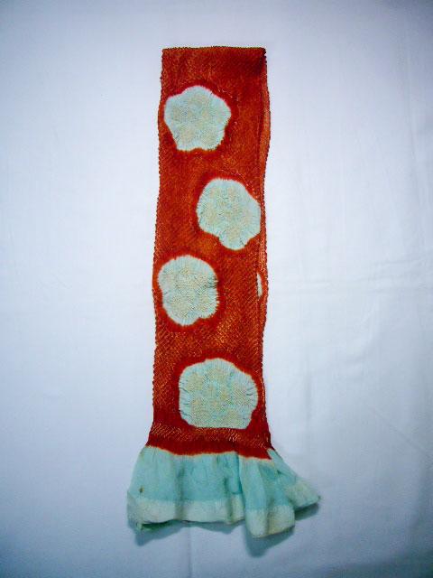 J0203XE Vintage Japanese Kimono Red OBI-AGE covering sash UME plum bloom Silk. (Grade C)