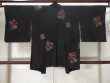 K1008J Used Japanese Black HAORI short jacket / Silk. Arabesque vine, (Grade B) [K1008J]