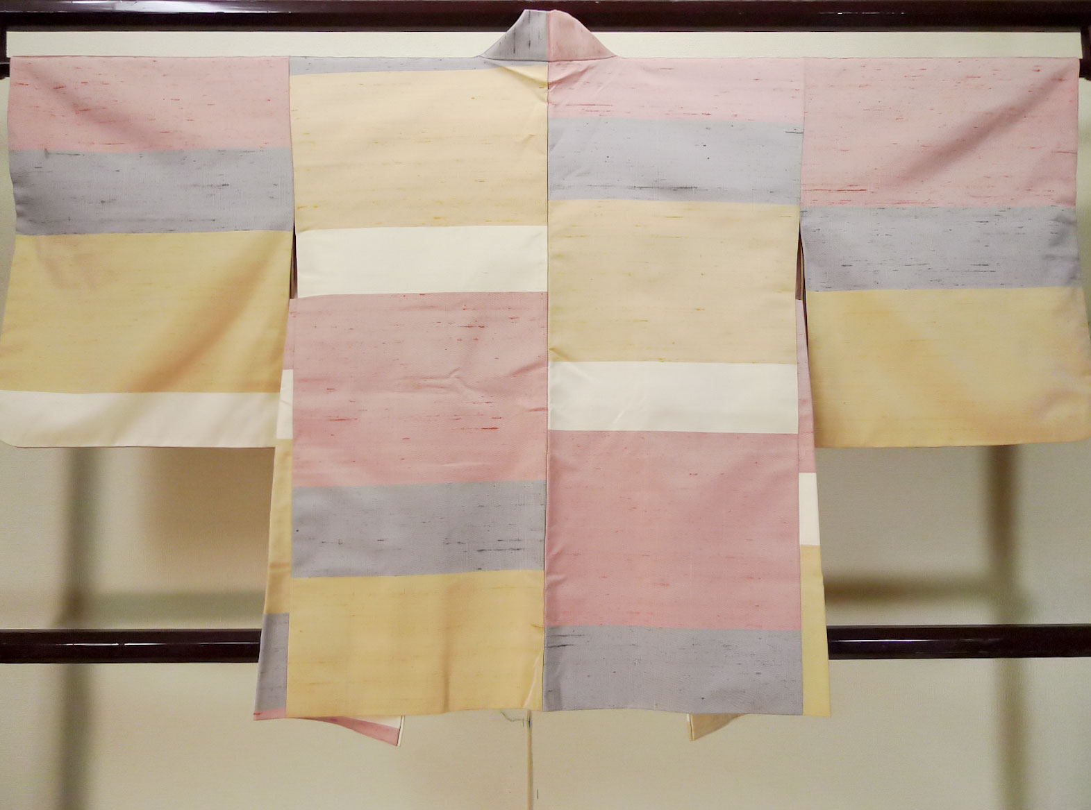 L0318G Used Japanese womenSmoky Creamy Purple HAORI short jacket / Silk. Line (Grade B)