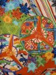 Mint L1201D Used Japanese women Vermilion KOMON dyed / Silk. UME plum bloom, Swallow pattern (Grade A)