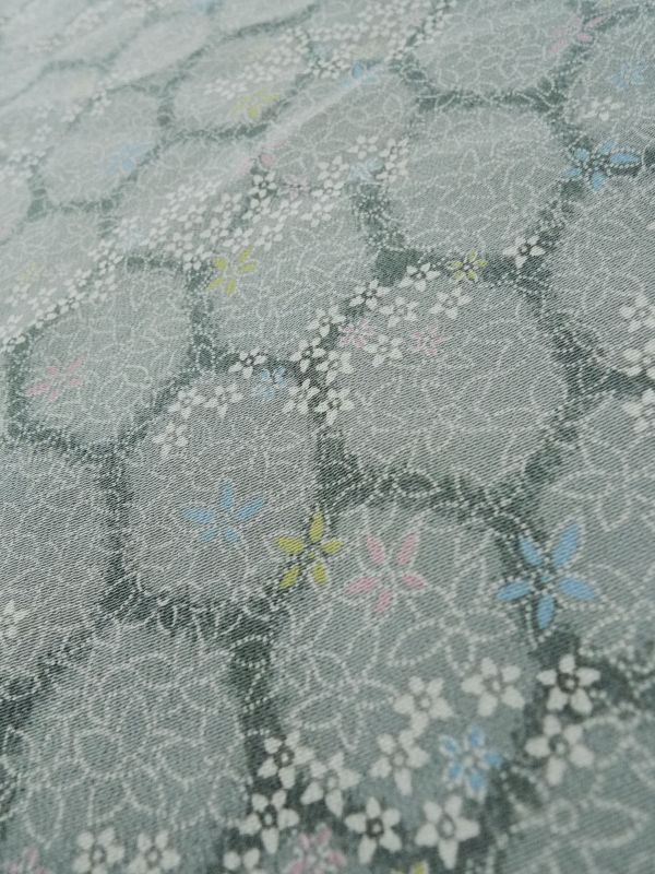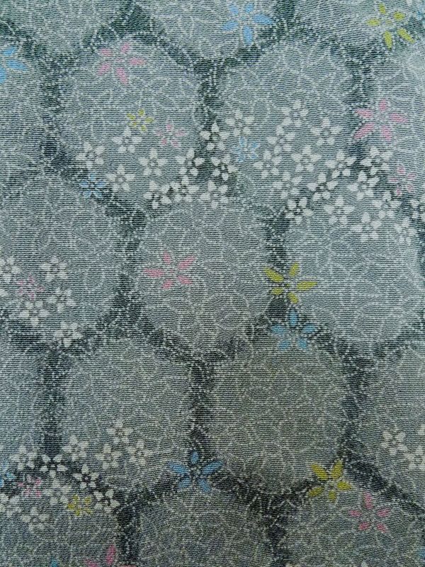 M0131A Used Japanese womenPale Bluish Gray KOMON dyed / Silk. Flower, (Grade B) [M0131A]
