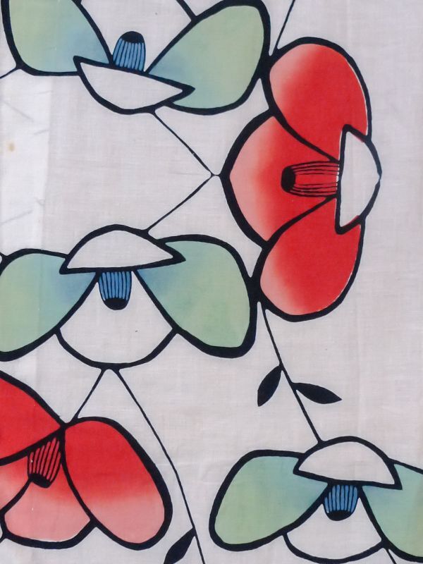 Kimonoya Japan : M0613Q Used Japanese women White YUKATA summer(made in Japan) / Cotton. Camellia (Grade C) / Yukata-Hitoe