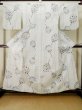 - > M0614A Used Japanese women White YUKATA summer(made in Japan) / Cotton/hemp SAKURA cherry blossom, paper fan pattern (Grade C)