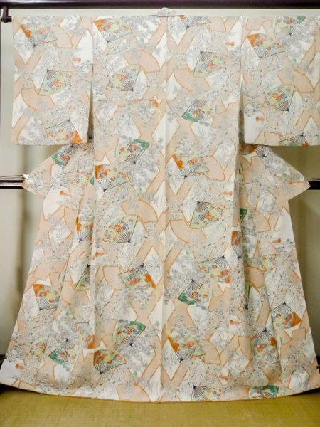 Mint M0720V Used Japanese women Light Orange KOMON dyed / Silk. Peony, (Grade A)
