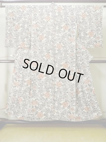 Kimonoya Japan : M0720W Used Japanese women Ivory KOMON dyed / Silk. Chrysanthemum (Grade C) / Komon