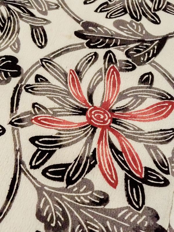 Notice : BACHI ERI collar - already folded into half CHIRIMEN crepe. The lining has many soils, stains or turned a bit yellow. Stains/Soils all over.