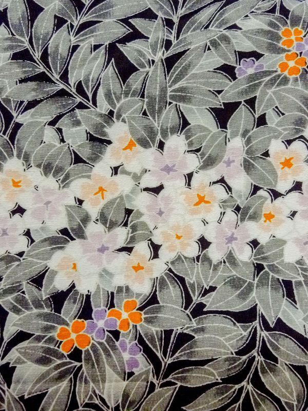 M0728G Used Japanese women Black KOMON dyed / Silk. Flower, (Grade B) [M0728G]