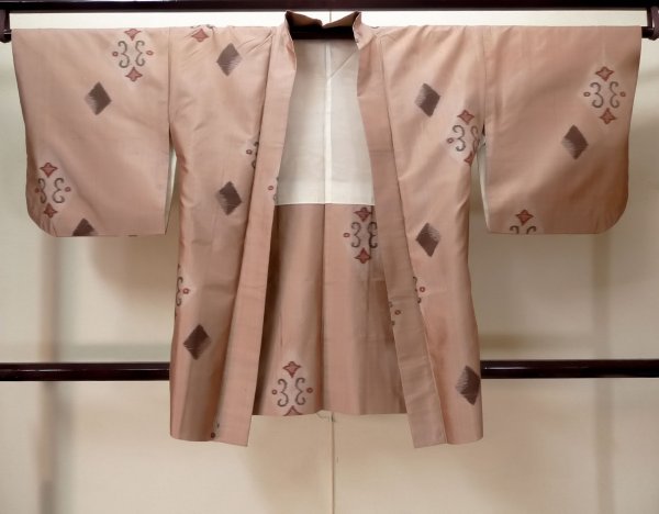- > M0908B Antique Japanese women Pale Pink HAORI short jacket / Silk. Lozenges, (Grade C)