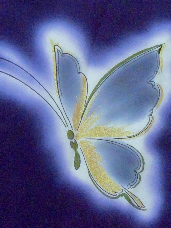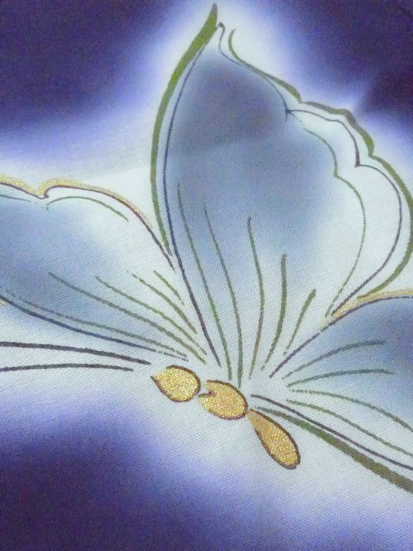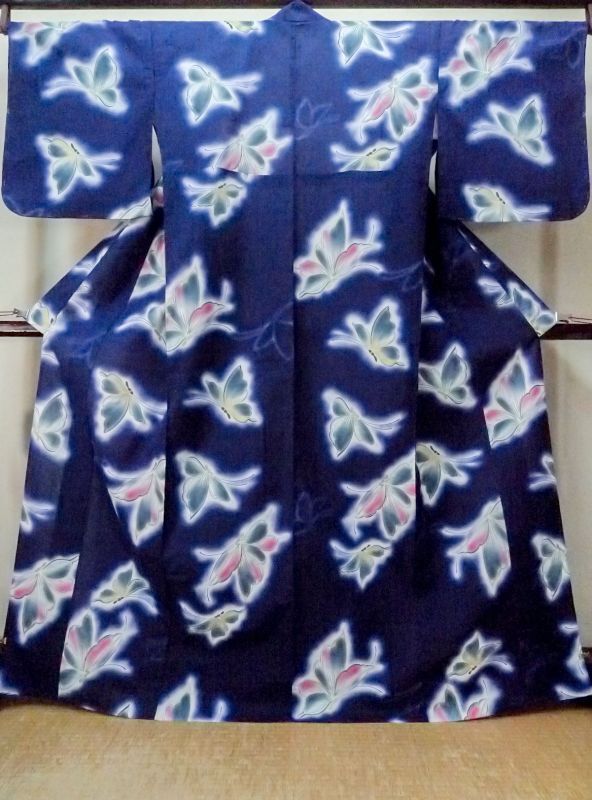 - > M0914C Vintage Japanese women Vivid Blue YUKATA summer(made in Japan) / Cotton. Butterfly (Grade C)
