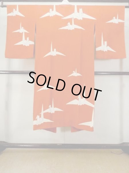 Kimonoya Japan : M0922E Antique Japanese women Red JUBAN undergarment / Silk. Crane Paper crane pattern (Grade B) / Antiques