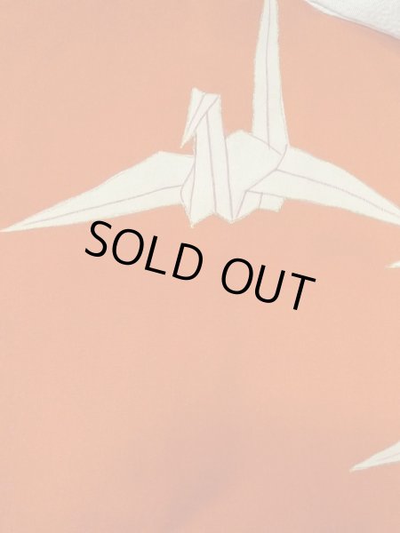 M0922E Antique Japanese women Red JUBAN undergarment / Silk. Crane Paper crane pattern (Grade B) [M0922E]