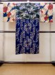 M1108G Antique Japanese women Vivid Blue JUBAN undergarment / Wool. Chrysanthemum, (Grade D)