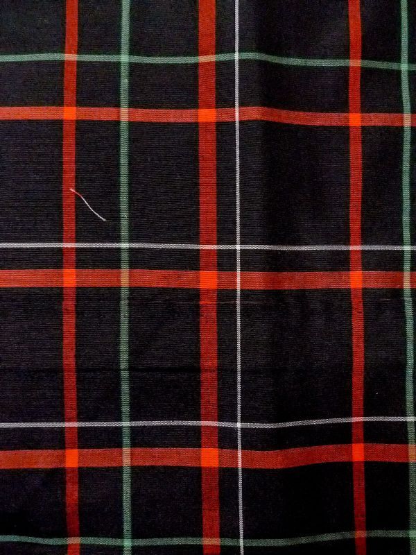 Mint N0123T Vintage Japanese women Black TSUMUGI pongee / Silk. Plaid Checks (Grade A)