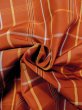 N0123W Vintage Japanese women Orange TSUMUGI pongee / Silk. Plaid Checks (Grade B)