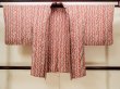 N0209E Vintage Japanese women Pale Vermilion HAORI short jacket / Silk. Stripes (Grade B) [N0209E]