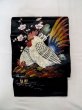 N0216K Vintage Japanese Kimono Black NAGOYA OBI sash UME plum bloom Silk. (Grade D) [N0216K]