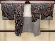 N0305E Vintage Japanese women Black HAORI short jacket / Silk. Flower, (Grade B) [N0305E]