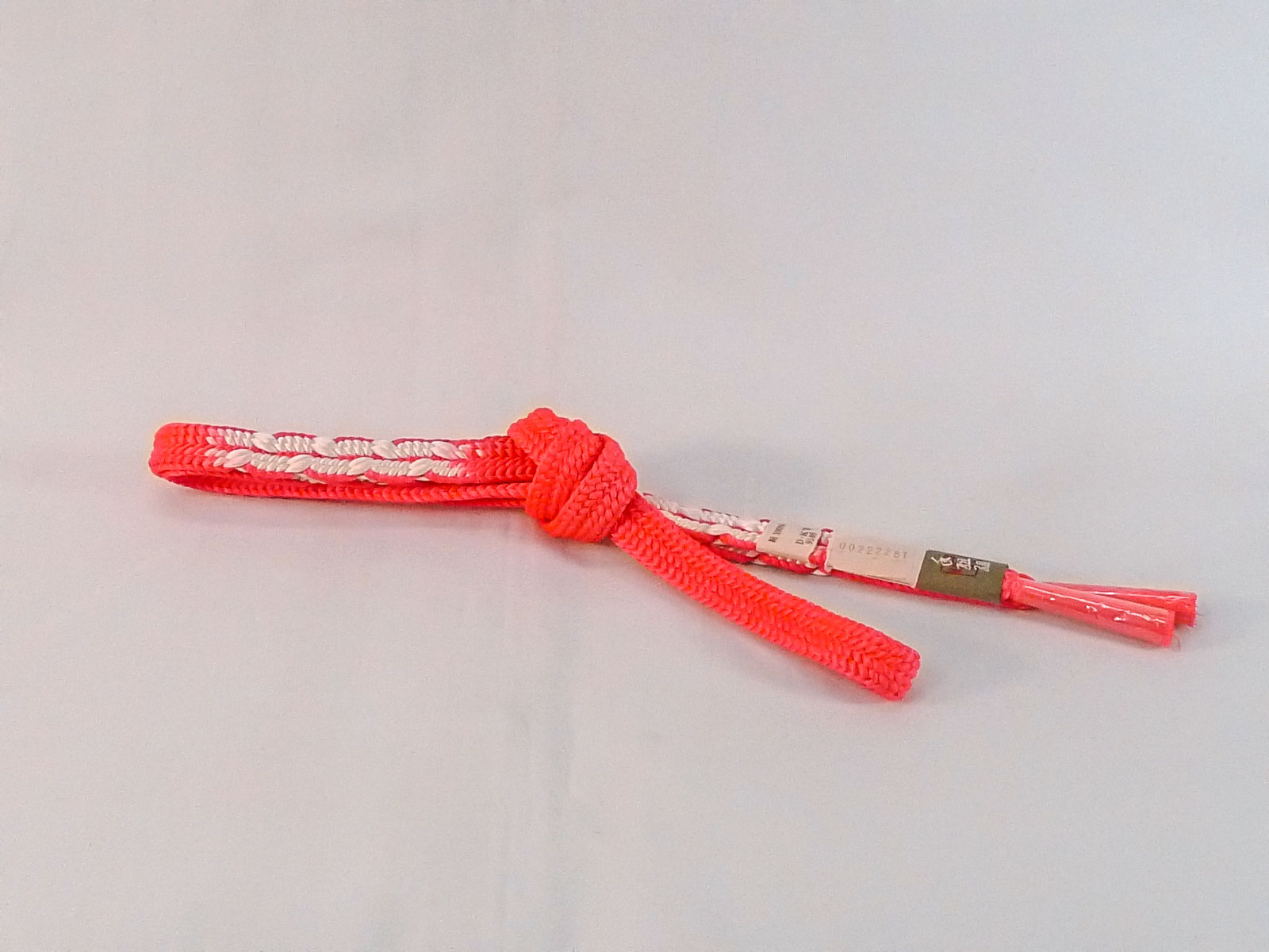 - > N1023XD Vintage Japanese Vivid Coral OBIJIME decorative string/cord/rope Abstract pattern Silk. (Grade A)