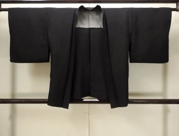 N1101Y Vintage Japanese kimono Black HAORI short jacket for women / Silk. The lining has a few soils, stains or turned yellow. (Grade B)