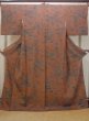 Mint N1112F Used Japanese kimono Dark Red KOMON dyed for women / Silk. Peony, (Grade A) [N1112F]