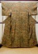 N1112J Used Japanese kimono Dark Beige KOMON dyed for women / Silk. Flower, (Grade A) [N1112J]