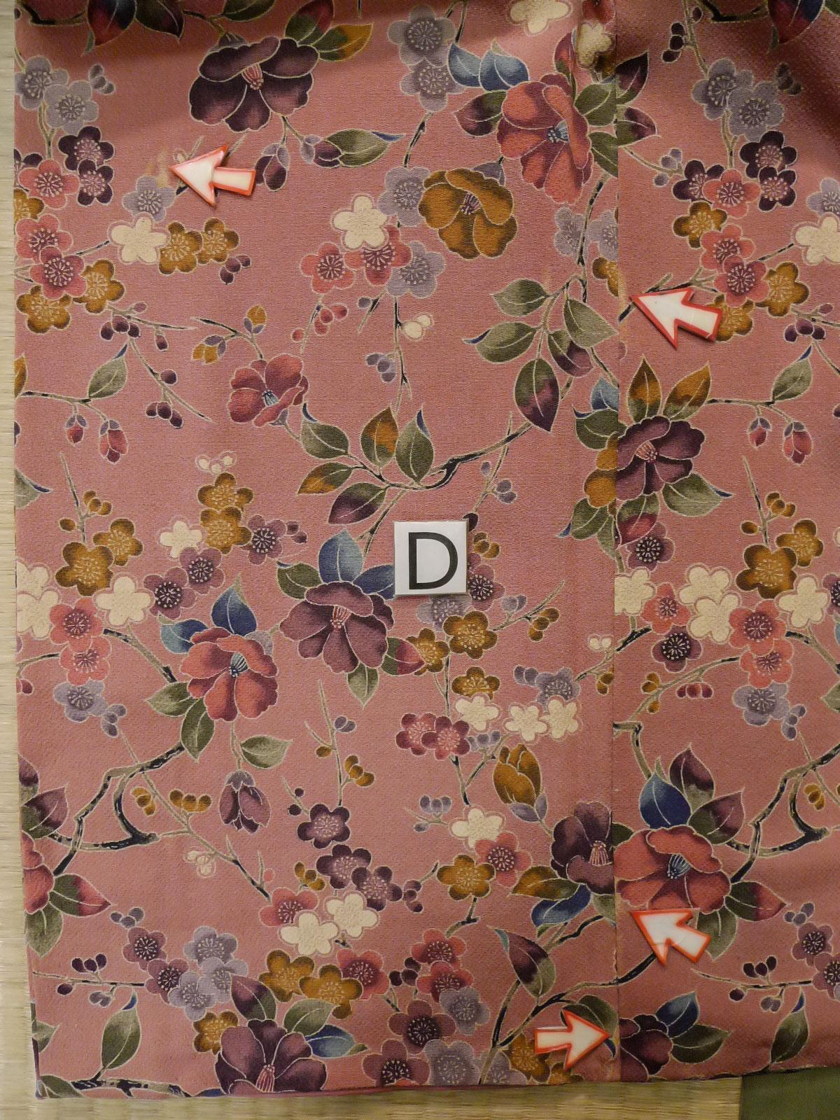 L1202D Used Japanese women Pale Pink KOMON dyed / Silk. UME plum bloom, (Grade C)