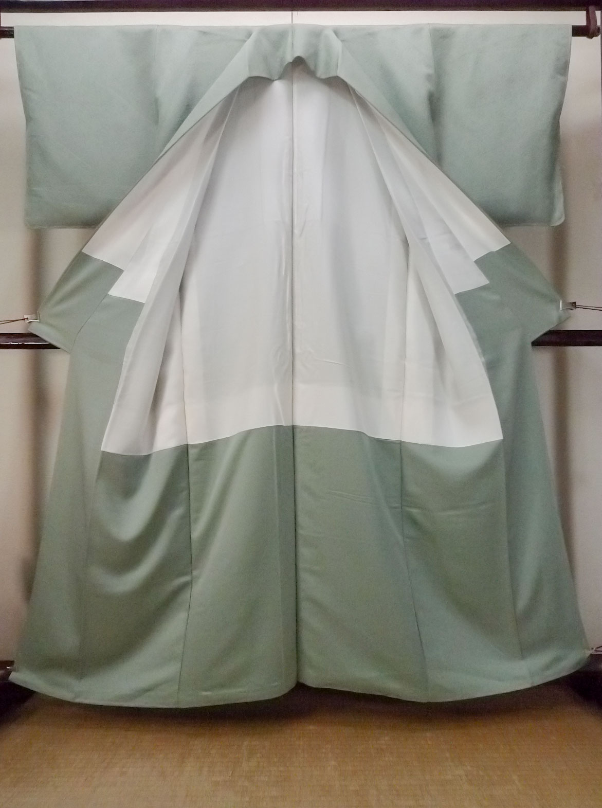 Mint O0117J Vintage Japanese kimono Pale Green IROMUJI plain colored for women / Silk. (Grade A)
