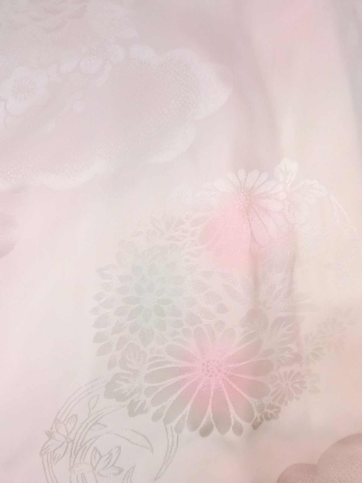 O0124X Vintage Japanese kimono Pale Pink JUBAN undergarment for women / Silk. Plum blossoms, clouds pattern (Grade B)