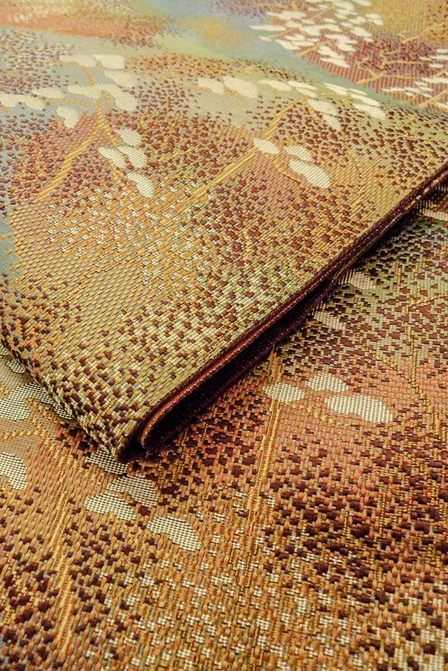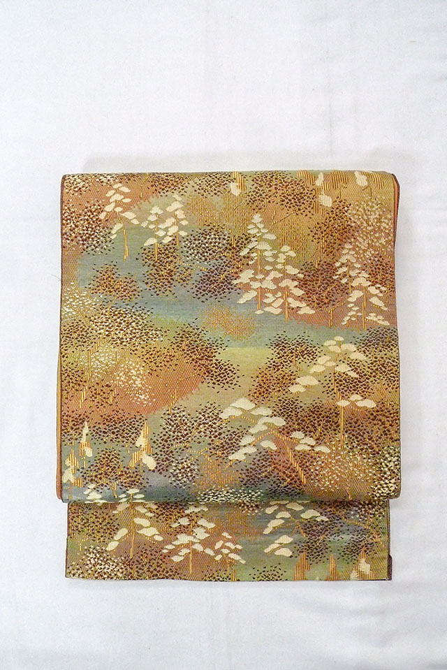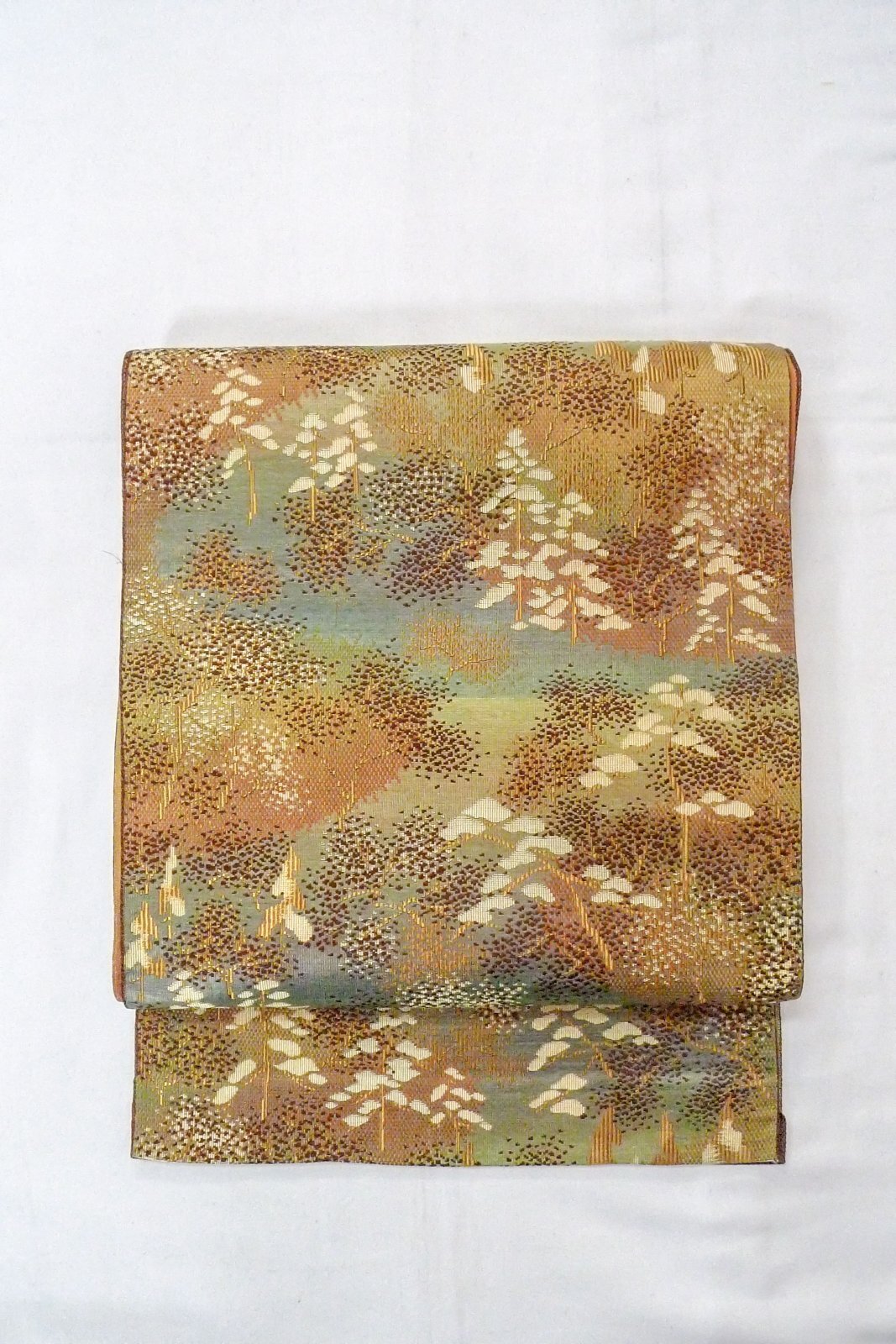 - > O0606R Vintage Japanese Kimono Brown FUKURO NAGOYA Obi Tree Silk. (Grade C)