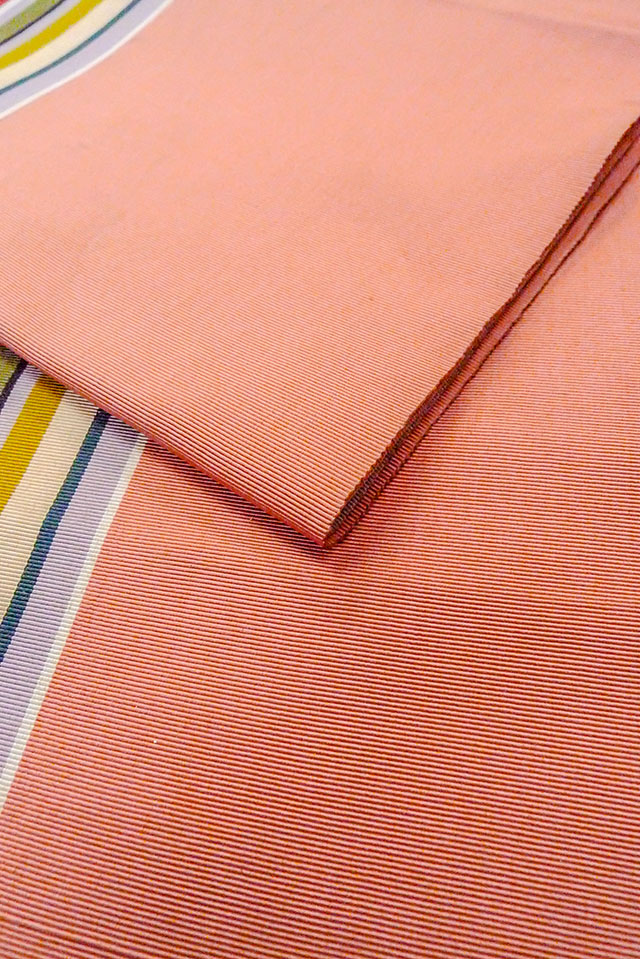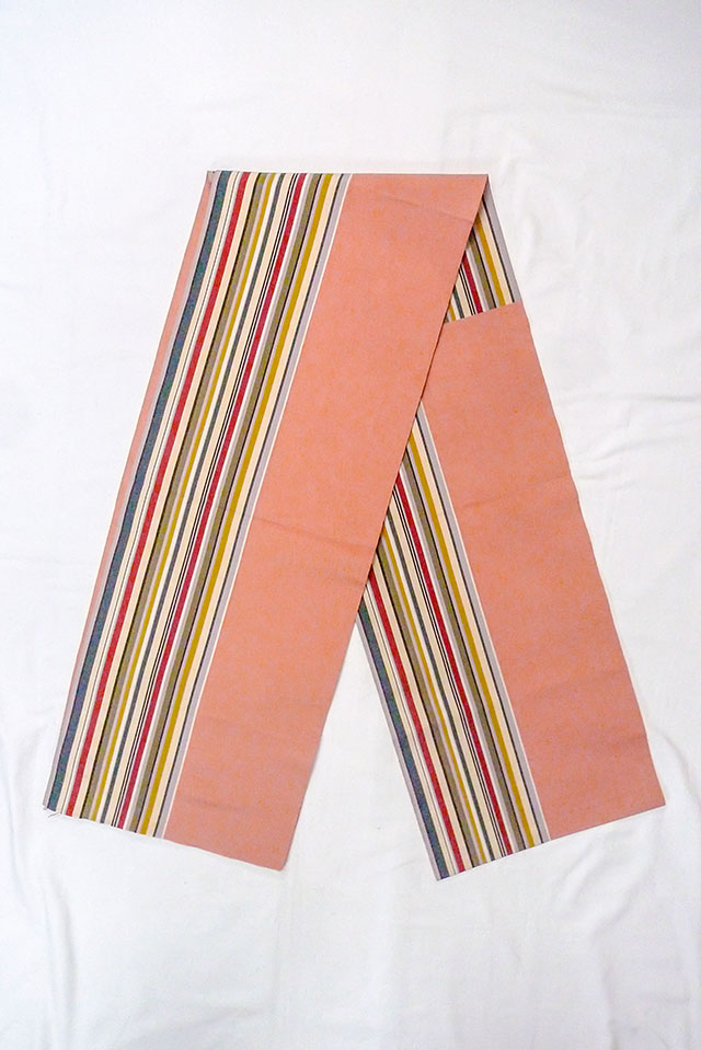 - > O0606S Vintage Japanese Kimono Coral FUKURO NAGOYA Obi Stripes Silk. (Grade C)