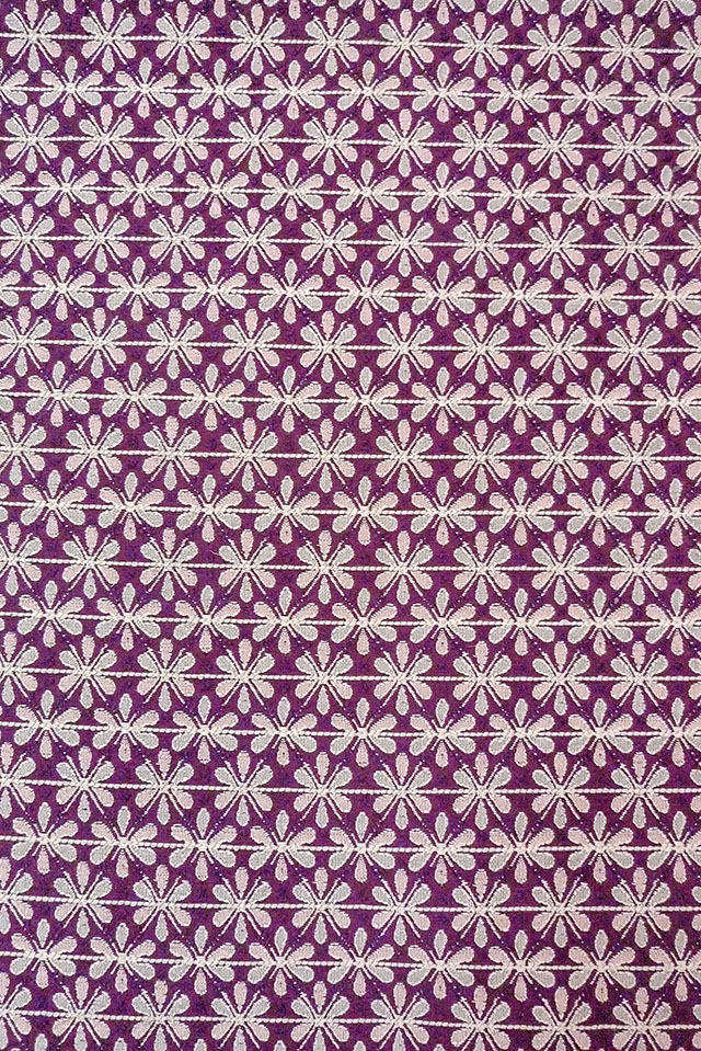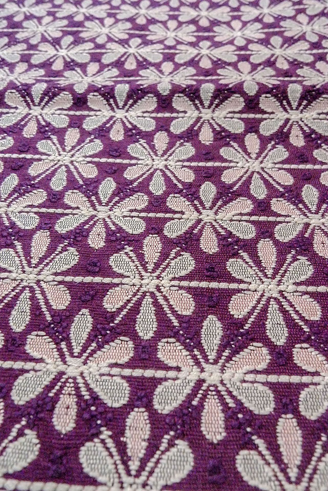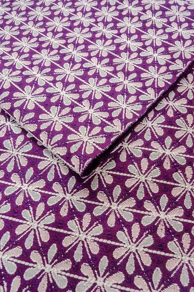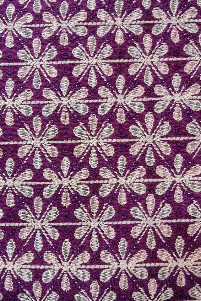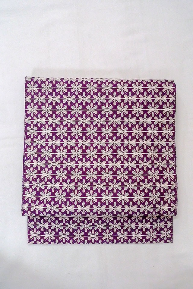 Mint O0606T Vintage Japanese Kimono Purple FUKURO NAGOYA Obi Flower Silk. (Grade A) [O0606T]
