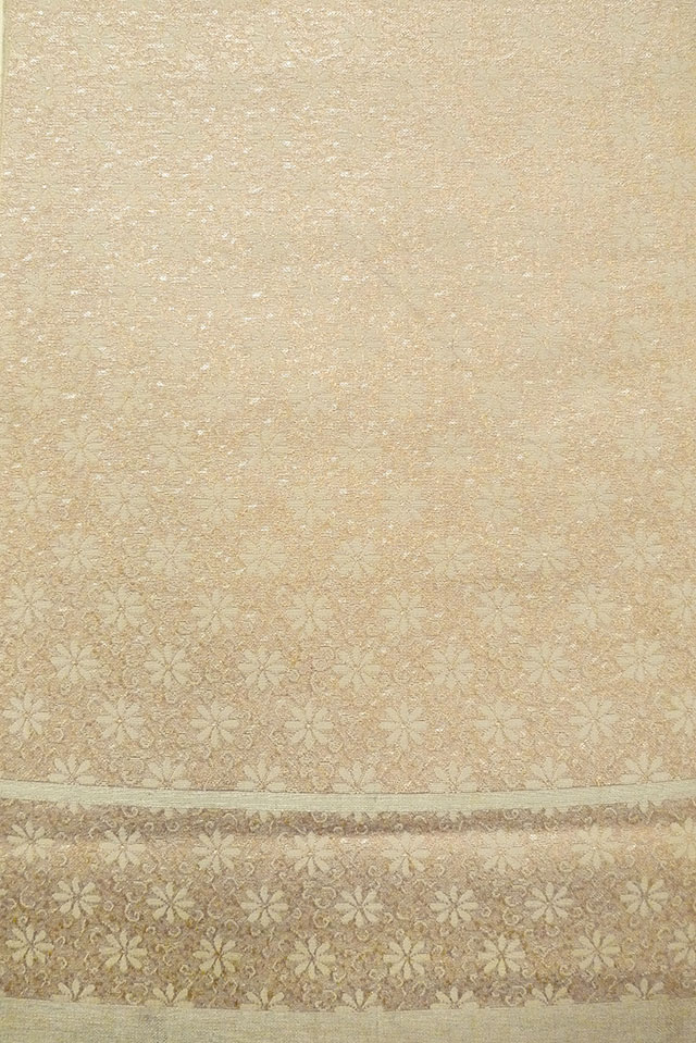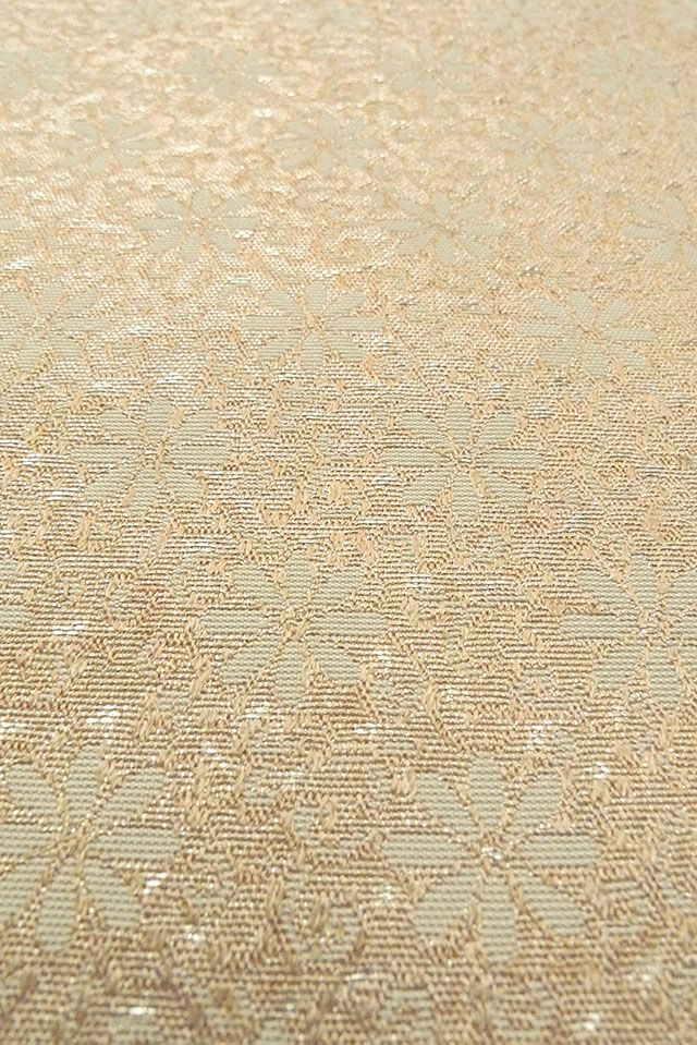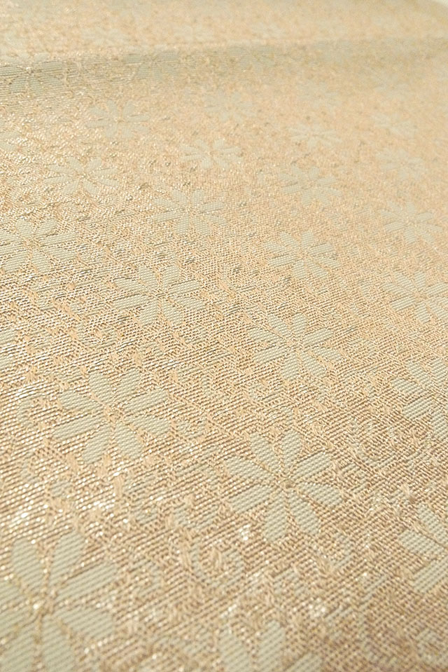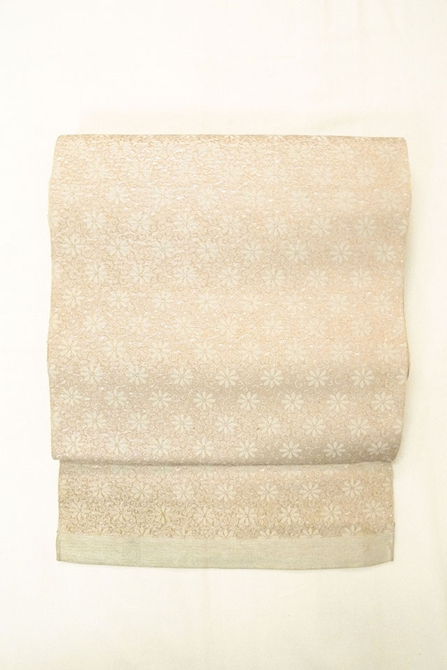 - > O0606W Vintage Japanese Kimono Light Gray FUKURO NAGOYA Obi Flower Silk. (Grade D)