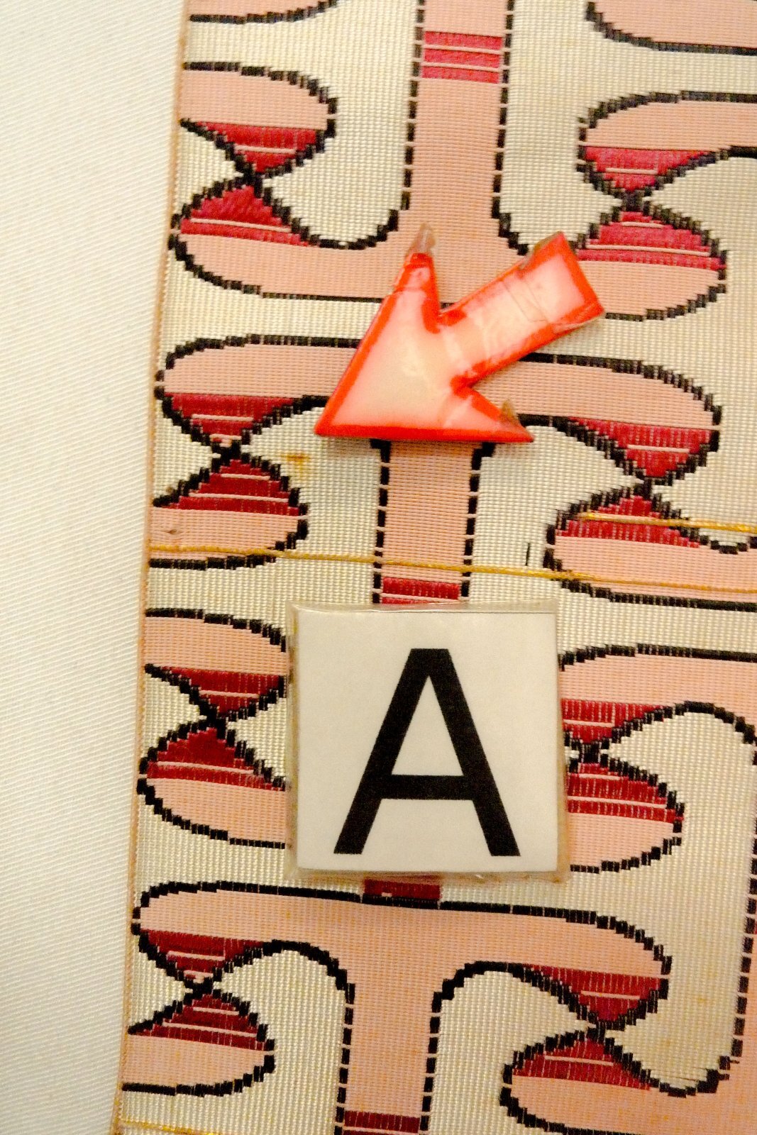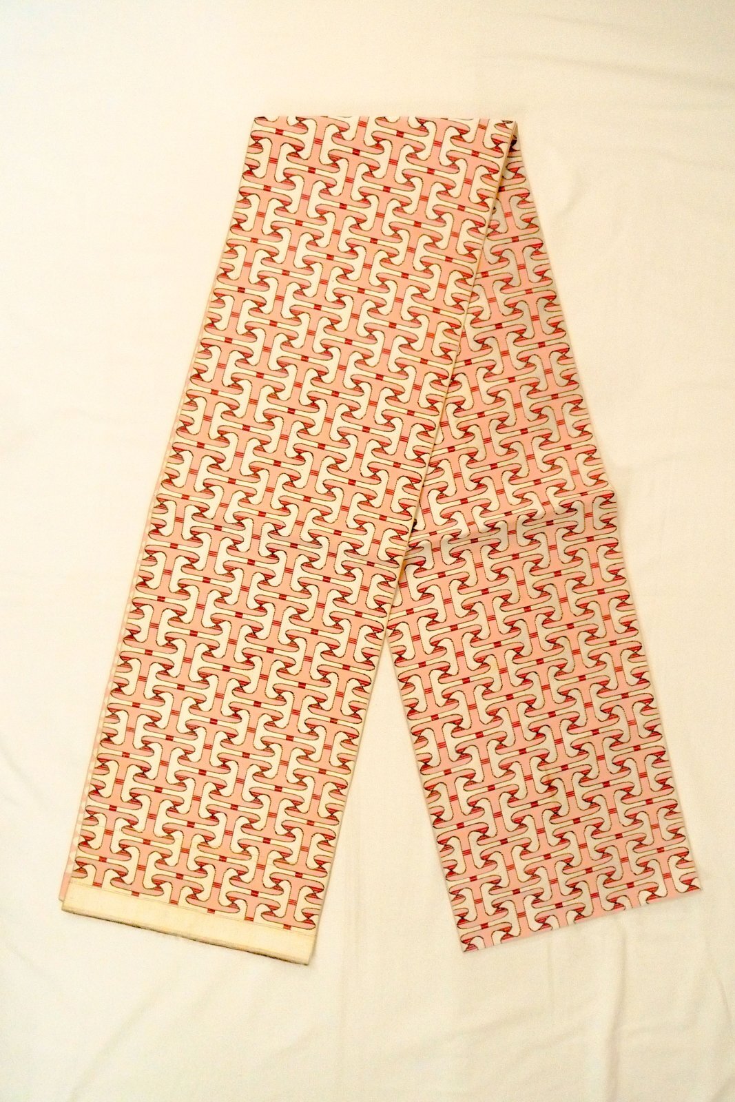 - > O0606X Vintage Japanese Kimono Off White FUKURO NAGOYA Obi Geometrical pattern Silk. (Grade C)