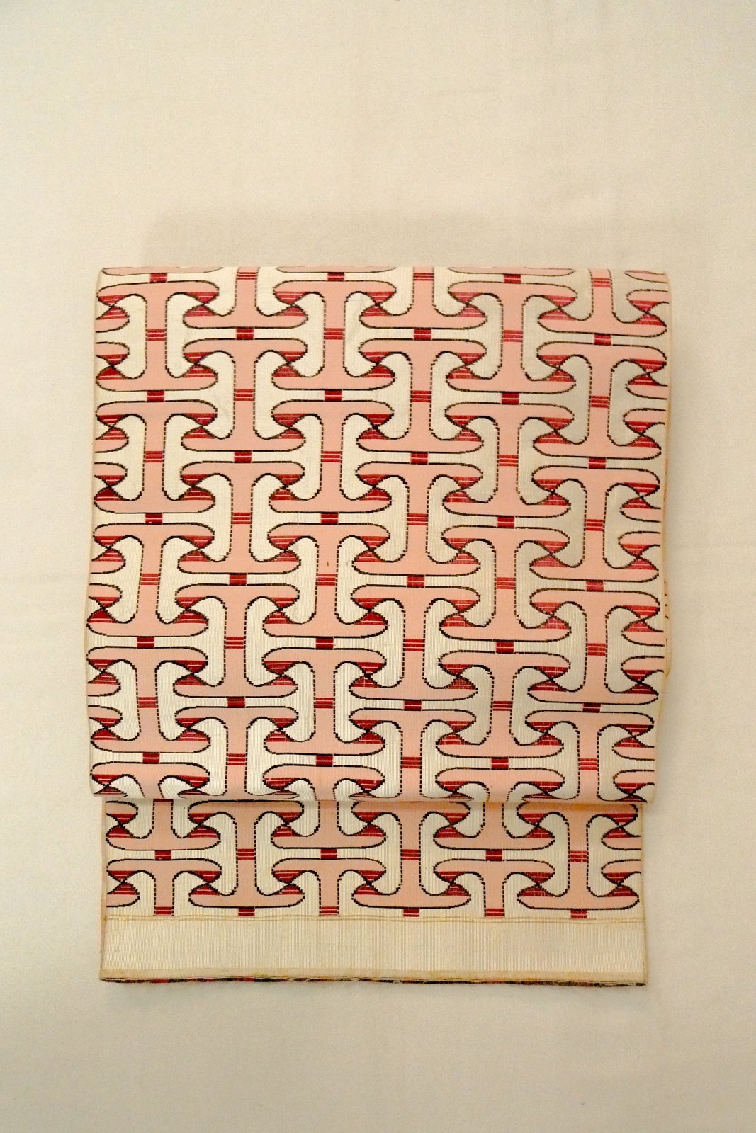 O0606X Vintage Japanese Kimono Off White FUKURO NAGOYA Obi Geometrical pattern Silk. (Grade C) [O0606X]