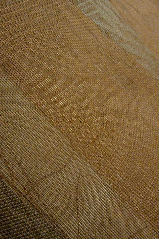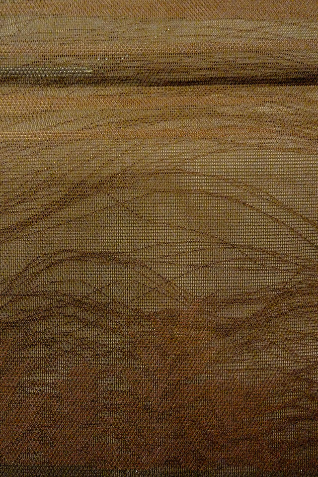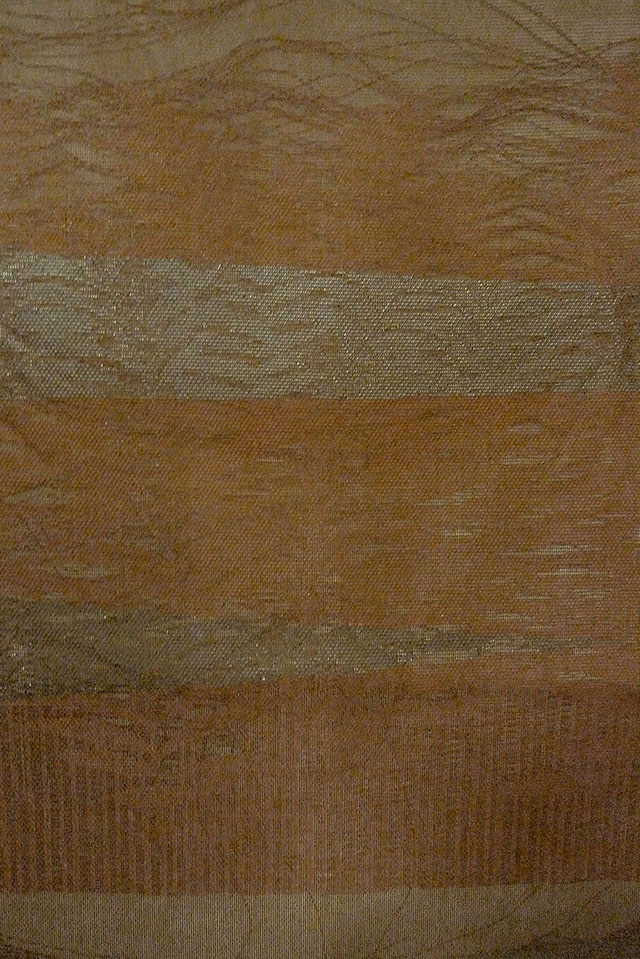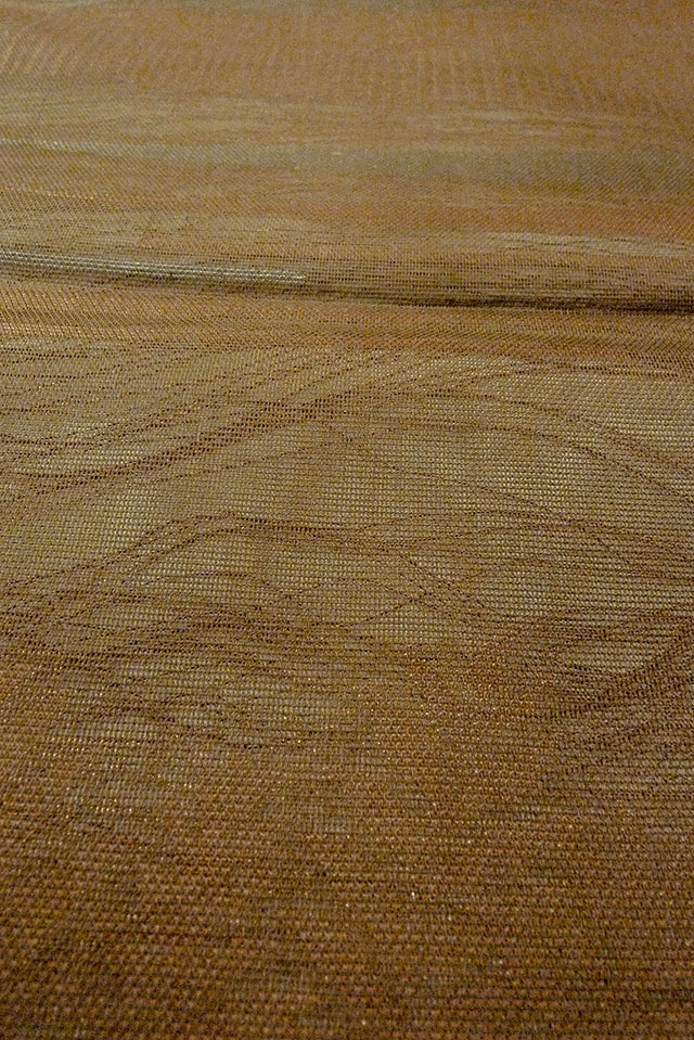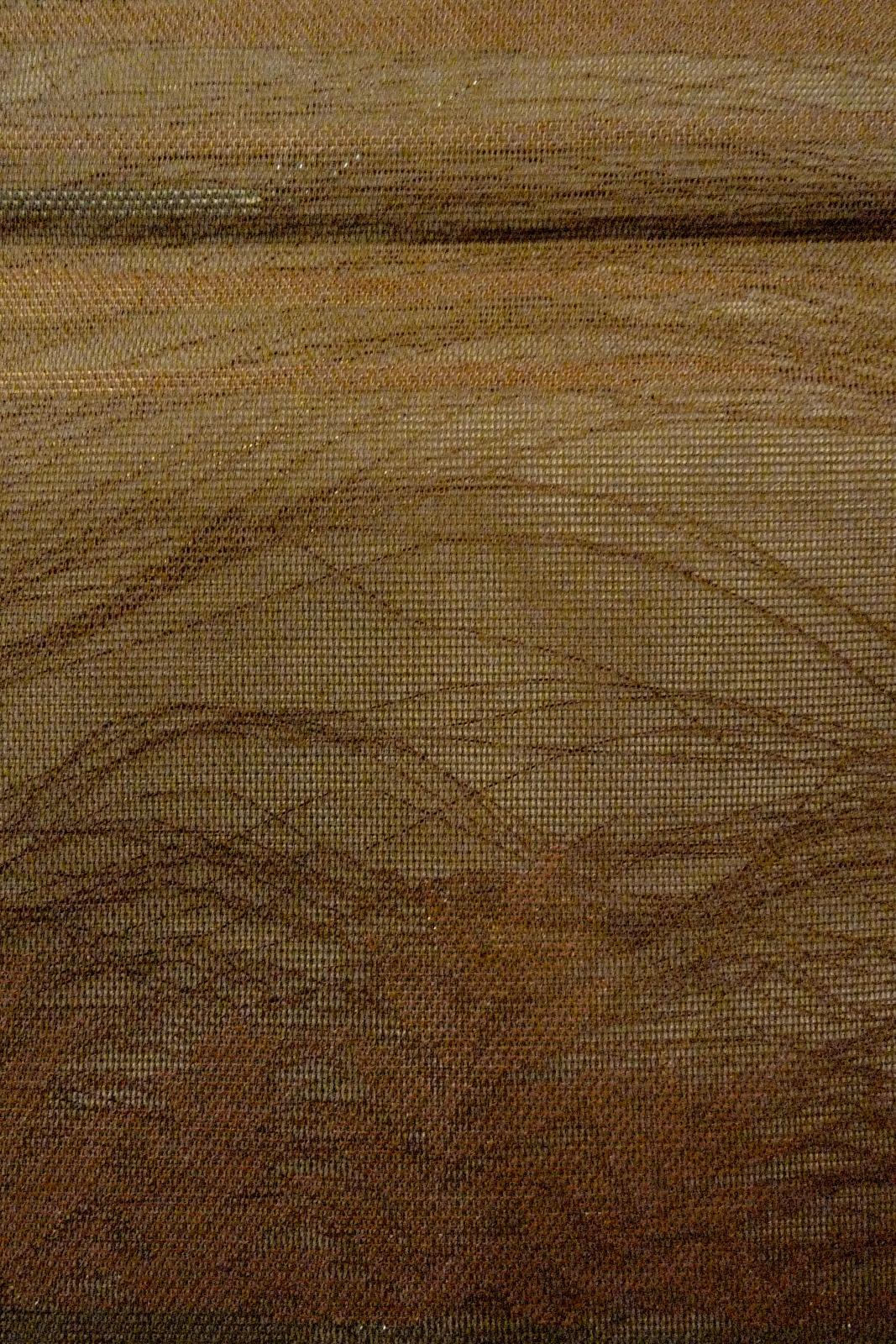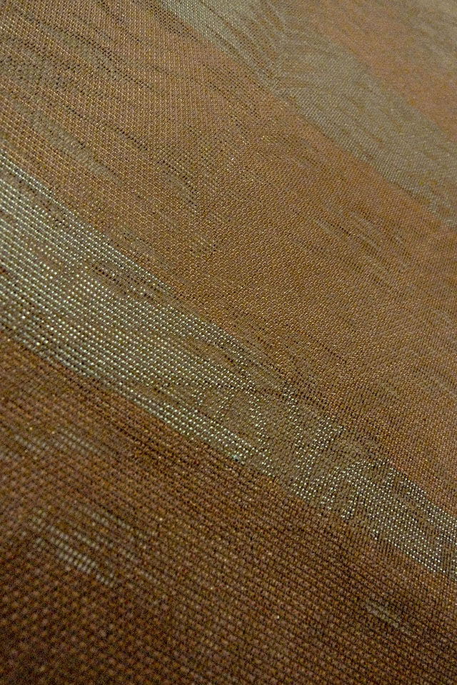 - > O0607B Vintage Japanese Kimono Dark Brown FUKURO OBI sash Leaf Linen. (Grade C)