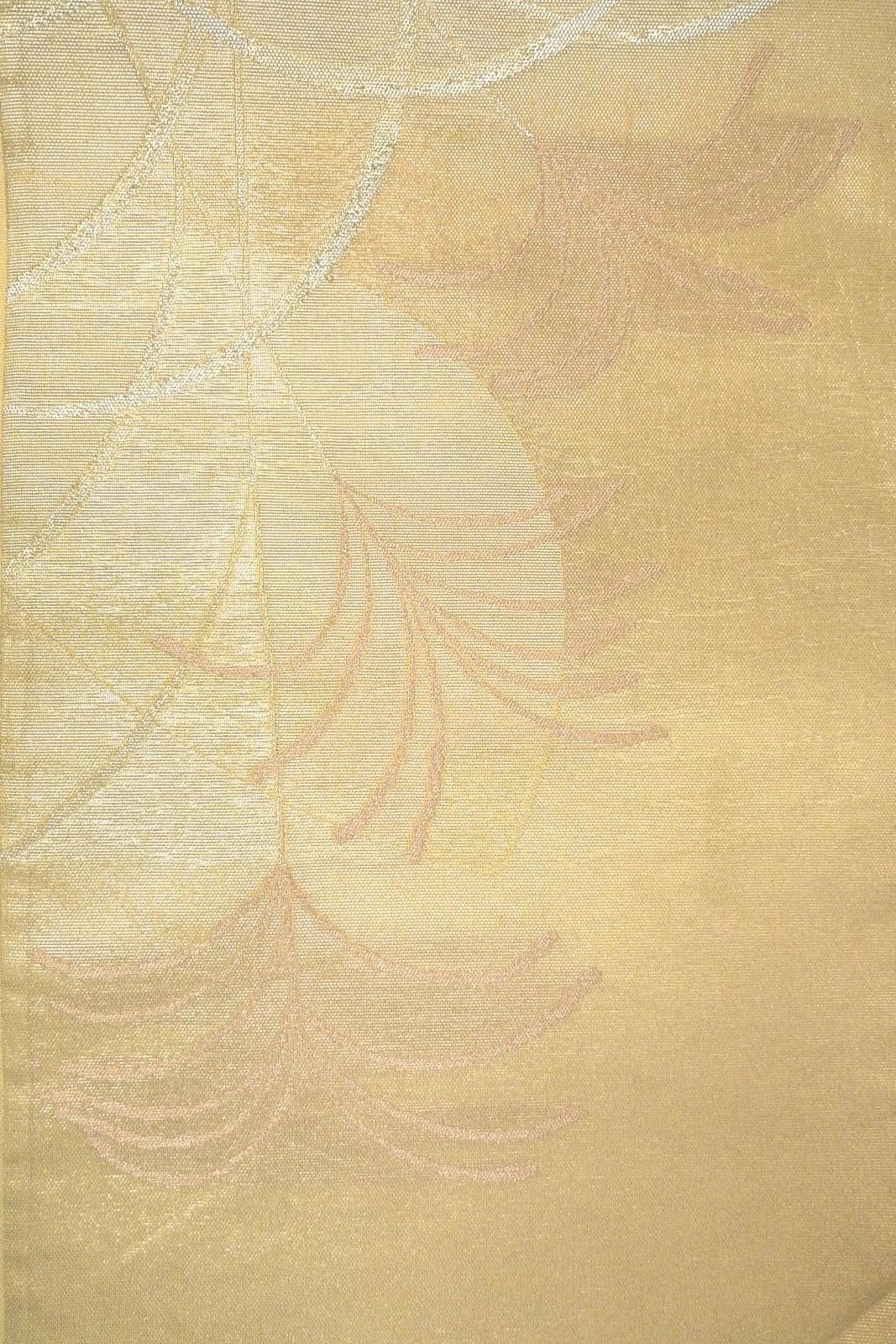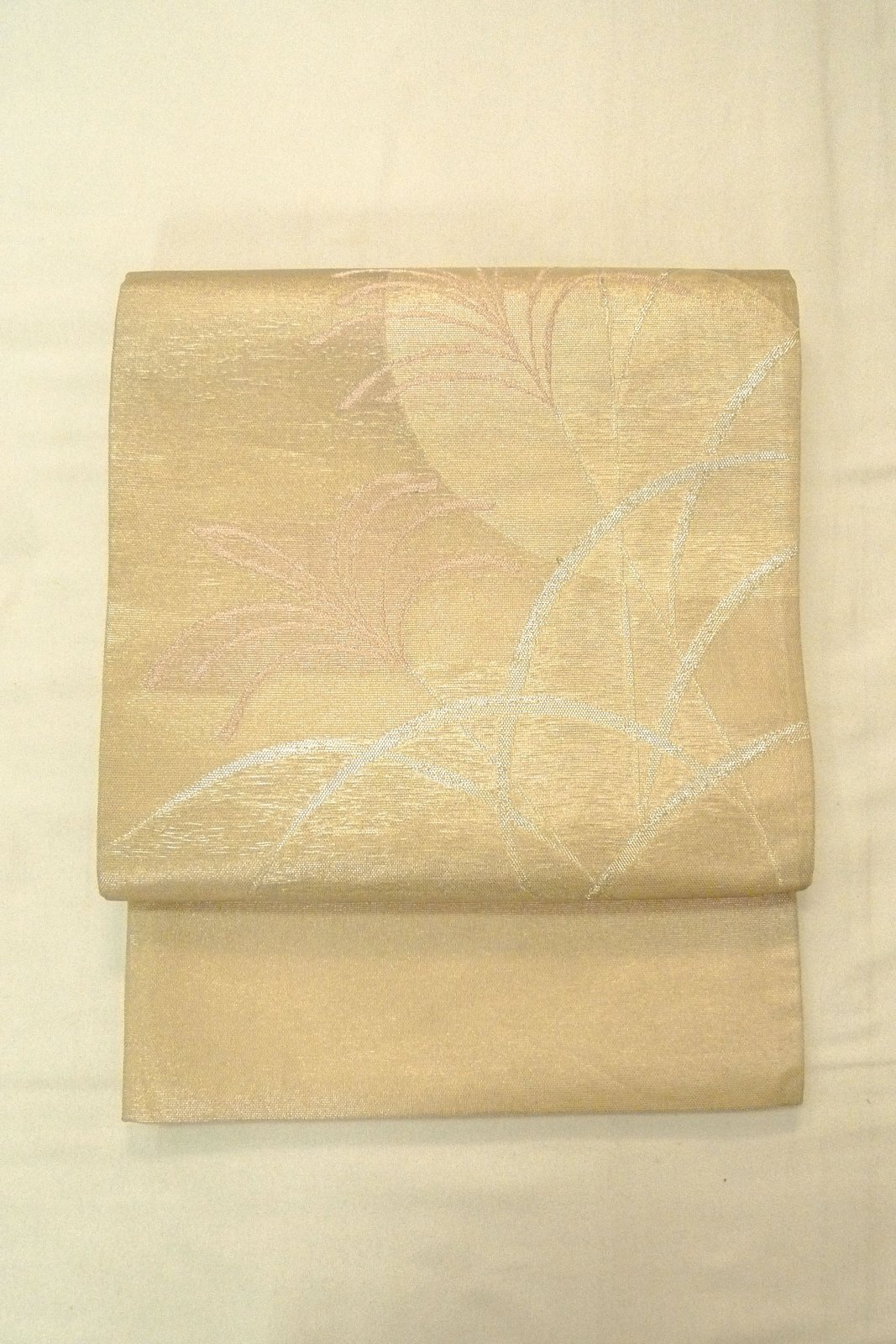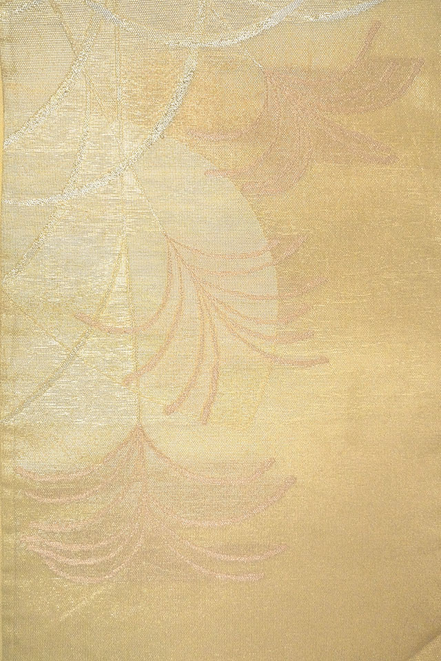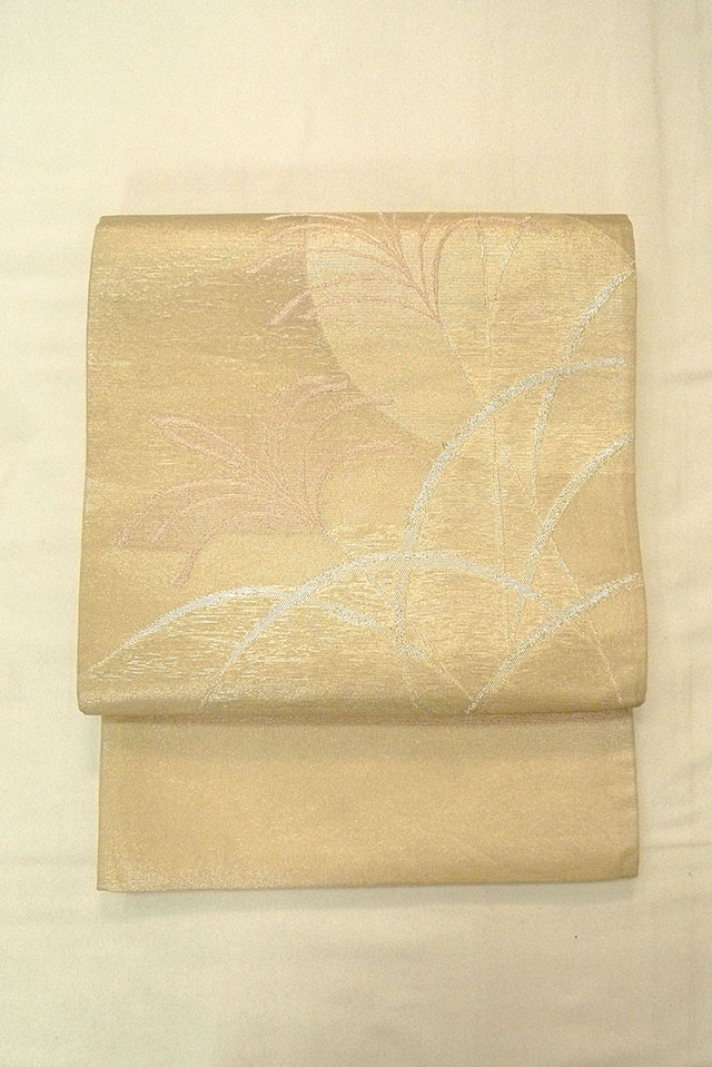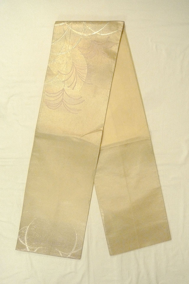 O0607C Vintage Japanese Kimono Shiny Ivory FUKURO OBI sash Silk. (Grade B) [O0607C]