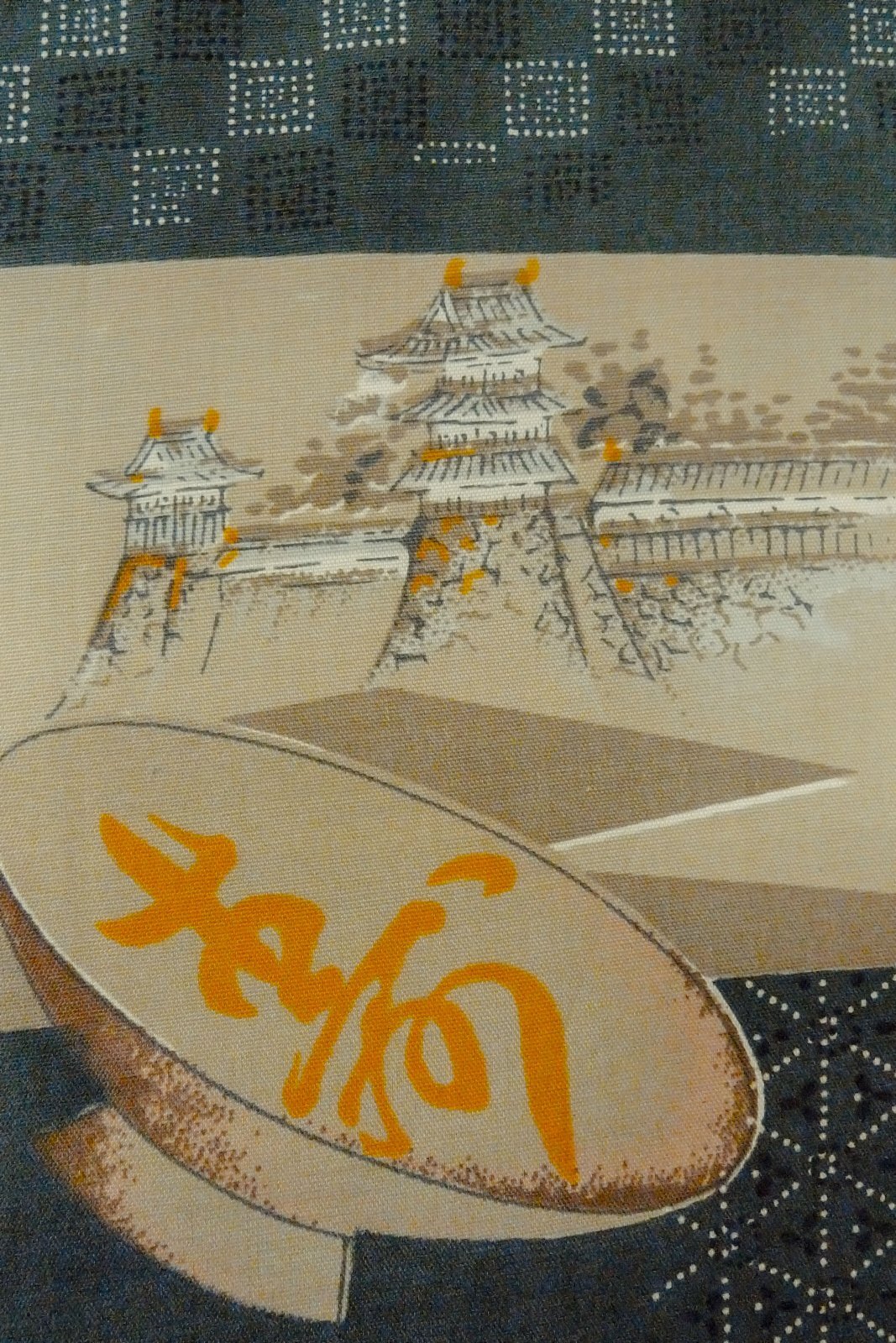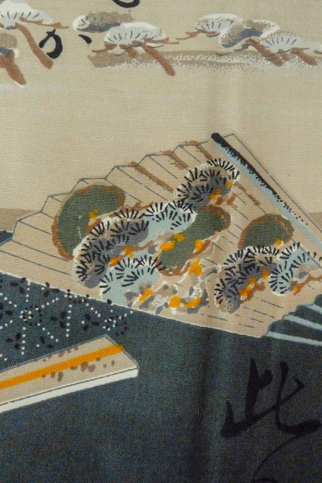 O0624B Vintage Japanese kimono Off White Men's Juban for men / Cotton. Landscape, Sleeves: silk, attached callor: synthetic (Grade C)