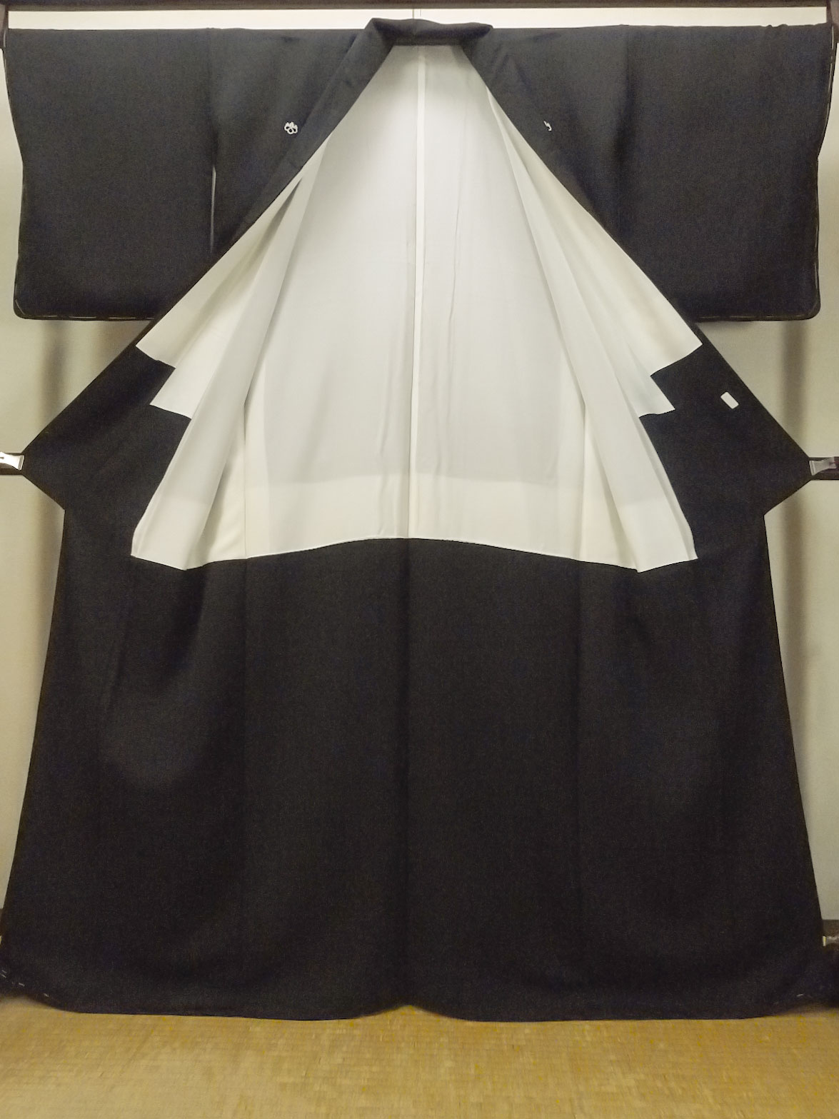 Mint O0624D Vintage Japanese kimono Black MONTSUKI crests for women / Synthetic. (Grade A) [O0624D]