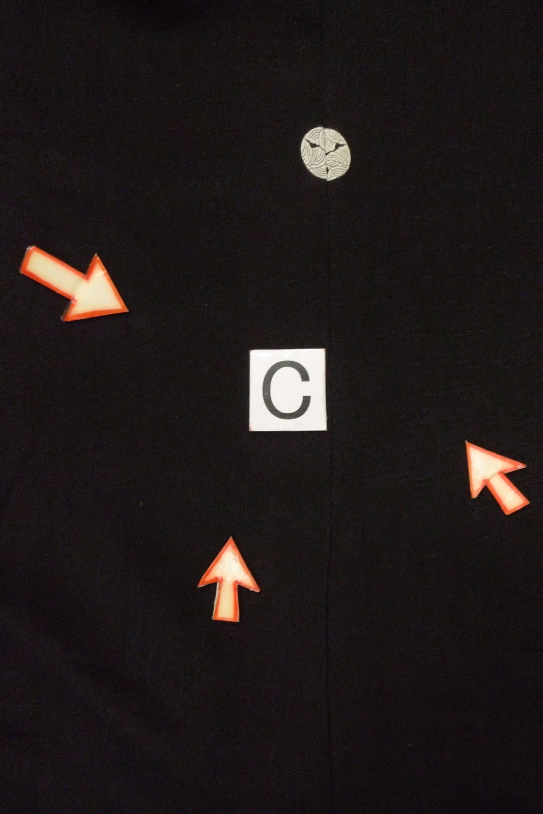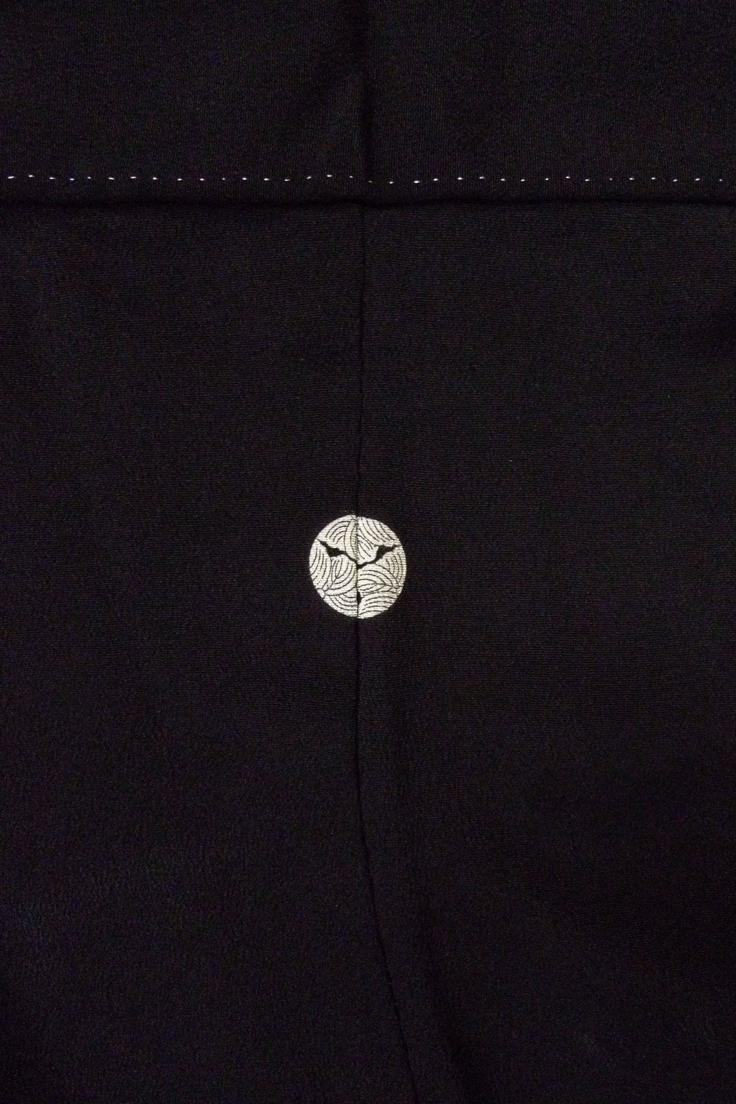 Notice : CHIRIMEN crepe. It has 5 KAMON family crest. HIYOKU tailoring, a Japanese tailoring method that makes a garment look like a layered kimono.