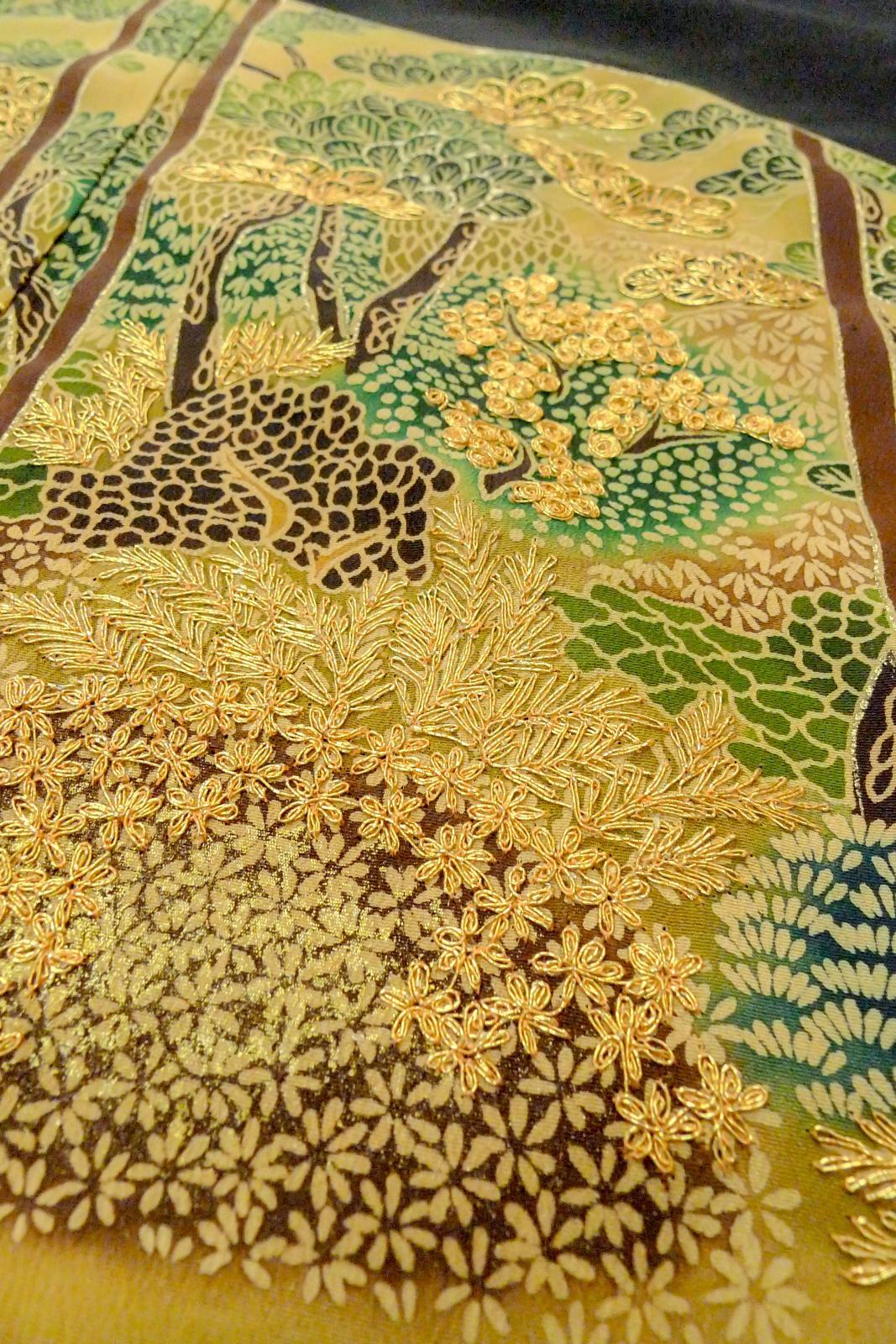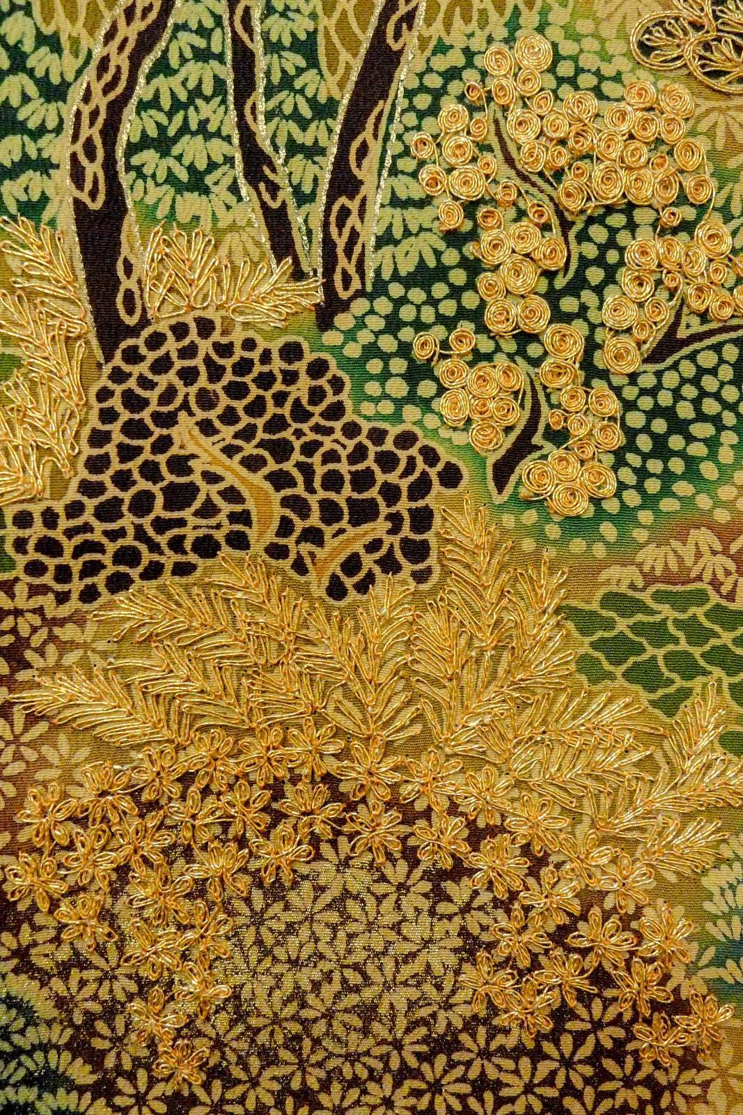 Other : Gold paint, Gold cord outlines, Gold powder Hand-sewn.
