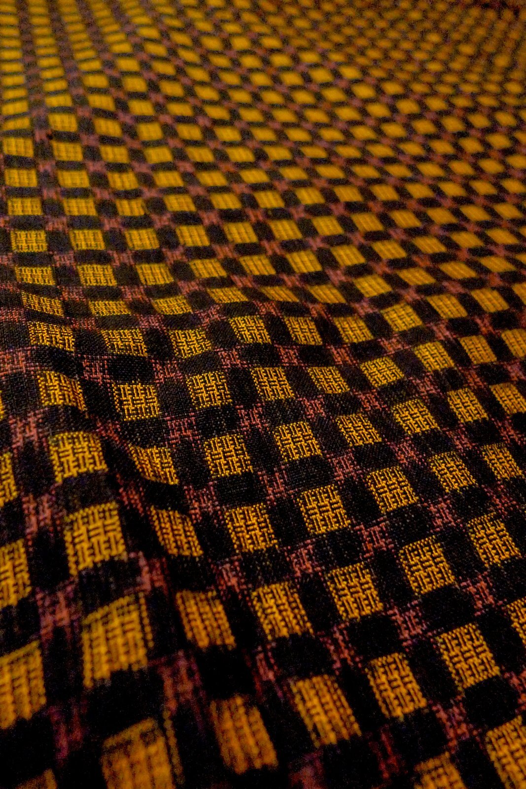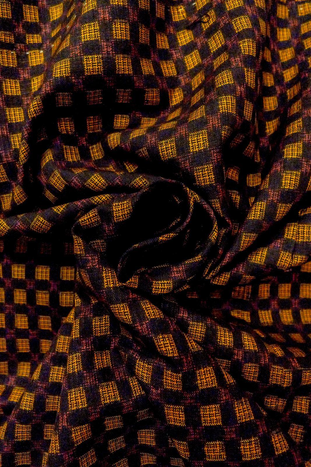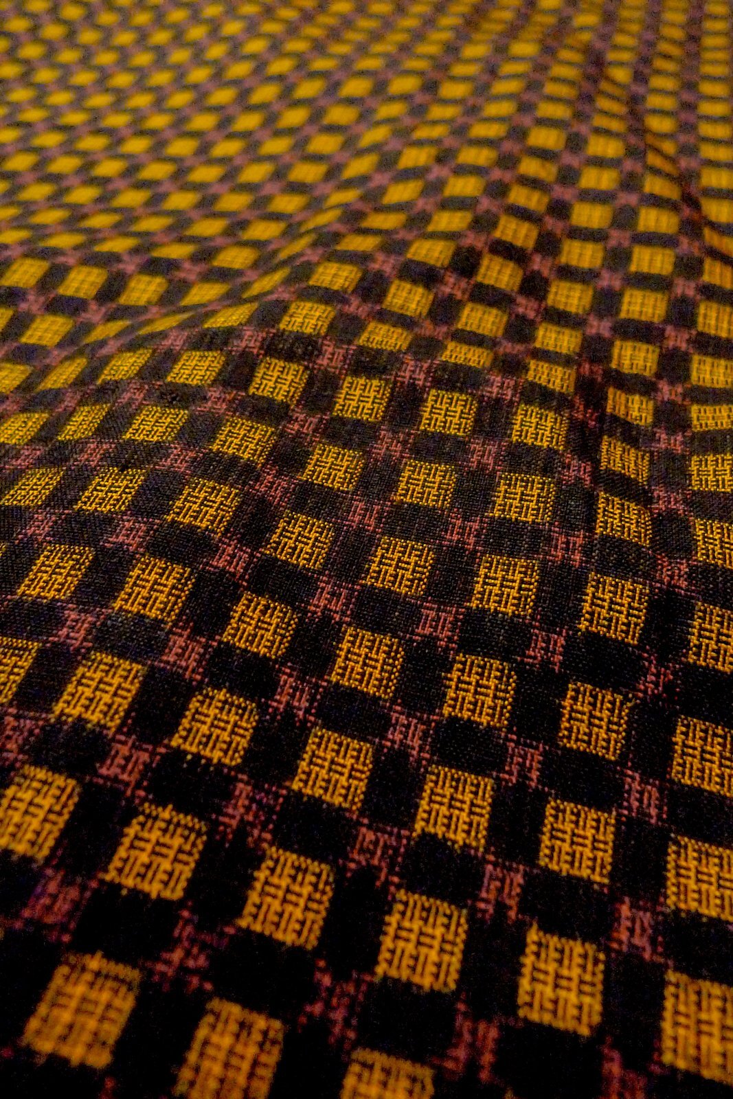O0624M Antique Japanese kimono Dark Yellow TSUMUGI pongee for women / Silk. Plaid Checks, (Grade B) [O0624M]