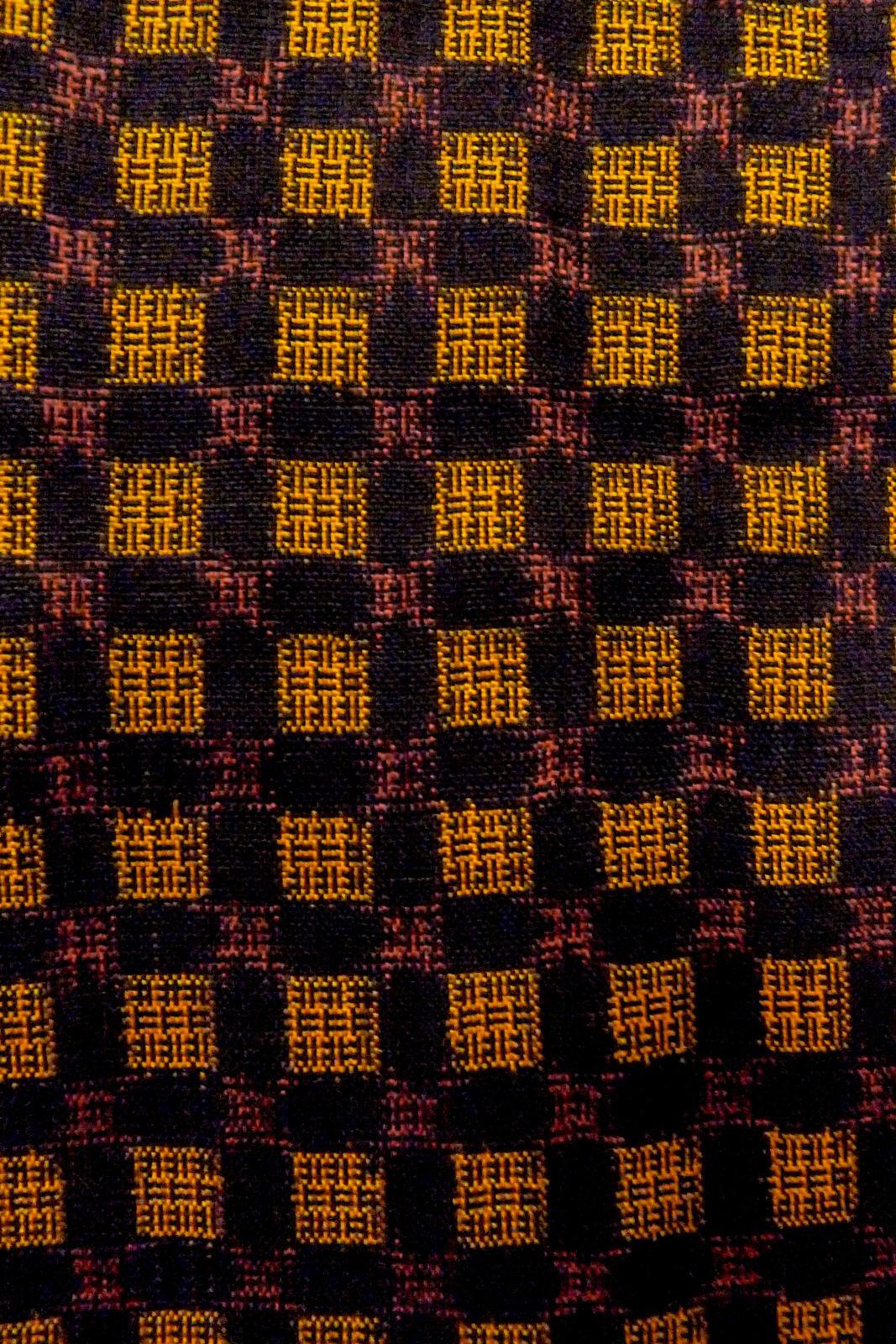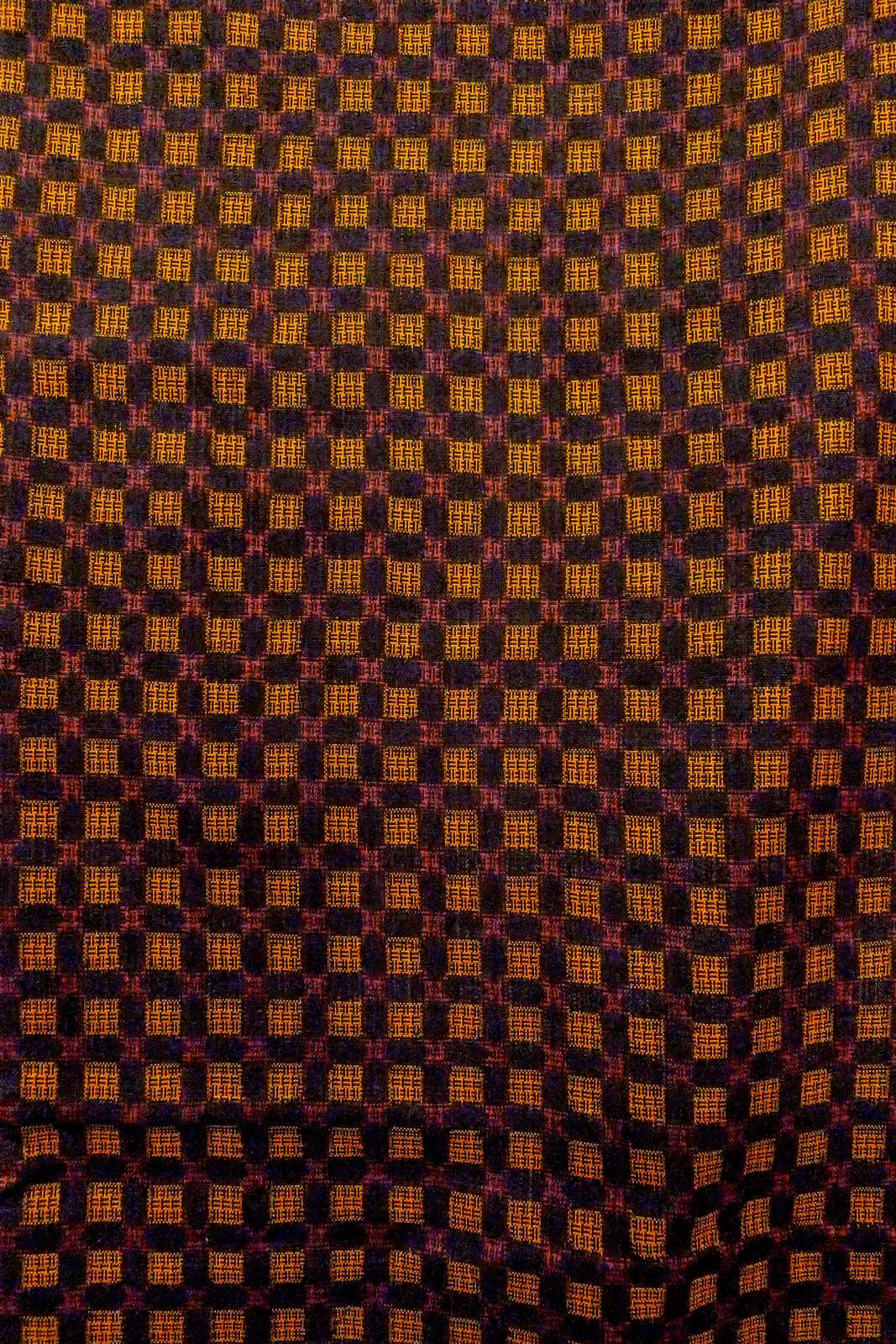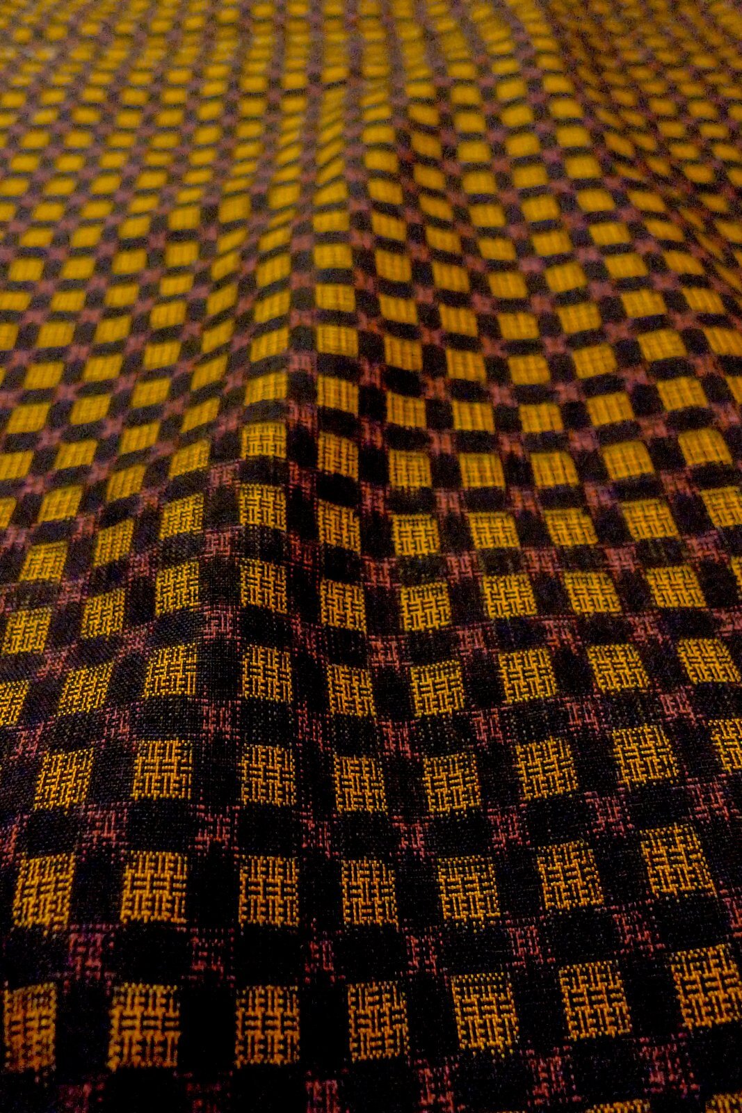 O0624M Antique Japanese kimono Dark Yellow TSUMUGI pongee for women / Silk. Plaid Checks, (Grade B) [O0624M]