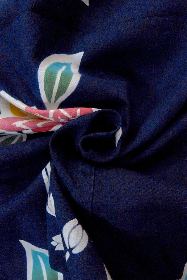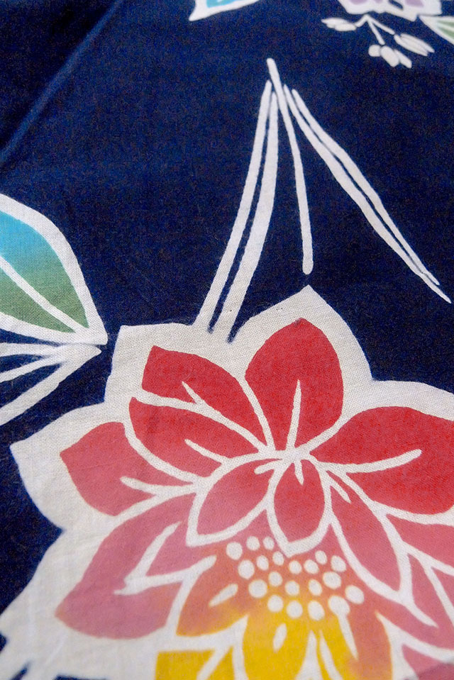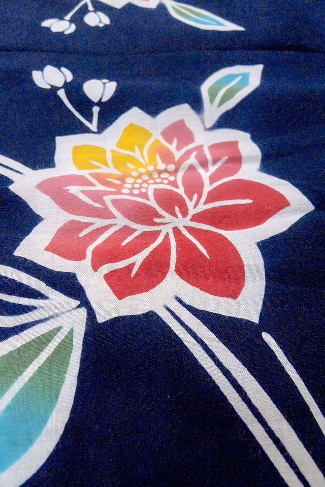 O0624R Vintage Japanese kimono Indigo Blue Pour Dyed Yukata for women / Cotton. Flower, (Grade D) [O0624R]