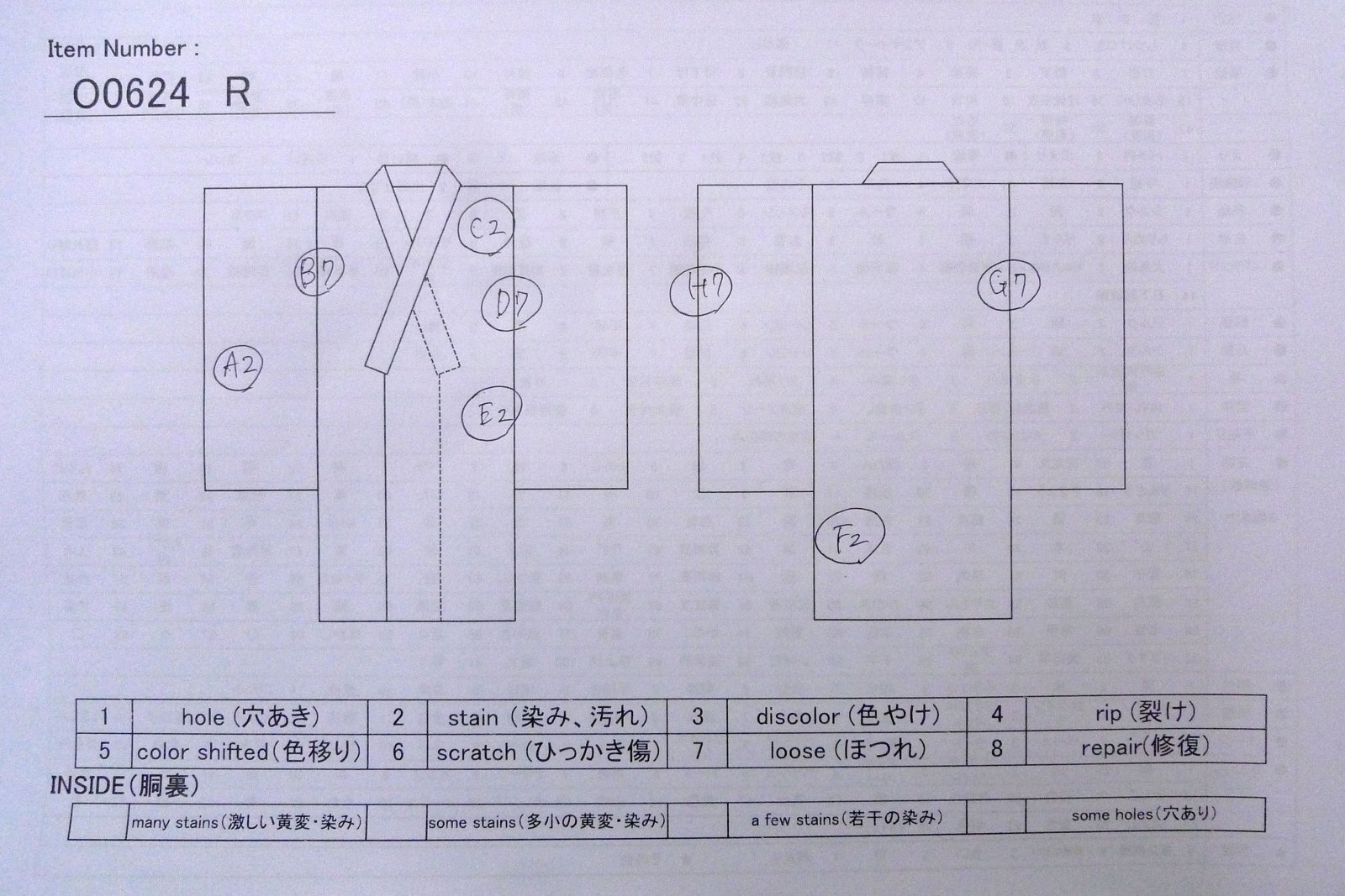 condition: | (Grade D) | lower lining (HAKKAKE) : |