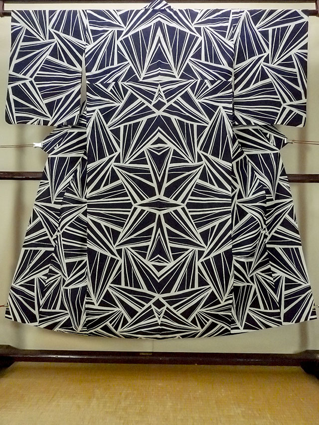 - > O0624W Vintage Japanese kimono Dark Indigo Blue YUKATA summer(made in Japan) for women / Cotton. Geometrical pattern (Grade C)