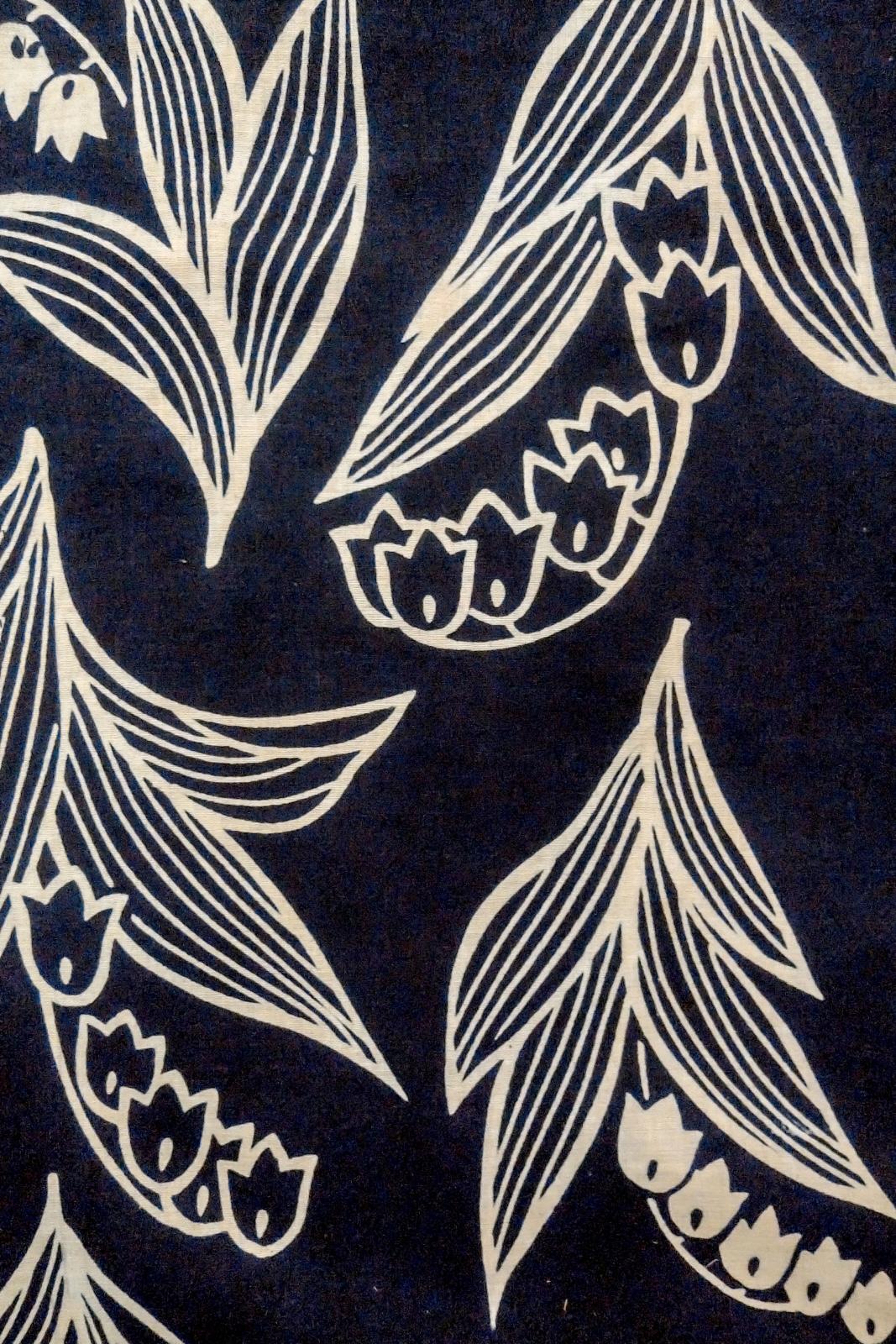 - > O0625B Vintage Japanese kimono Dark Indigo Blue YUKATA summer(made in Japan) for women / Cotton/hemp Lily of the valley pattern (Grade C)