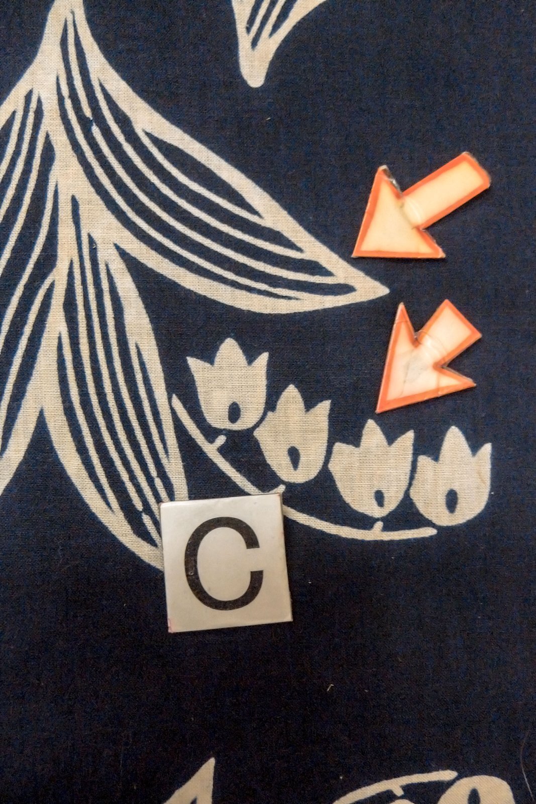 Notice :HITOE unlined.Stains/Soils all over.Rough to the touch.Lily of the valley pattern