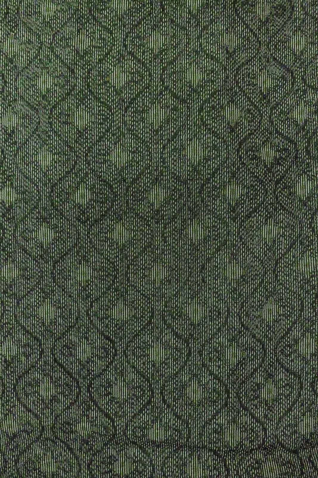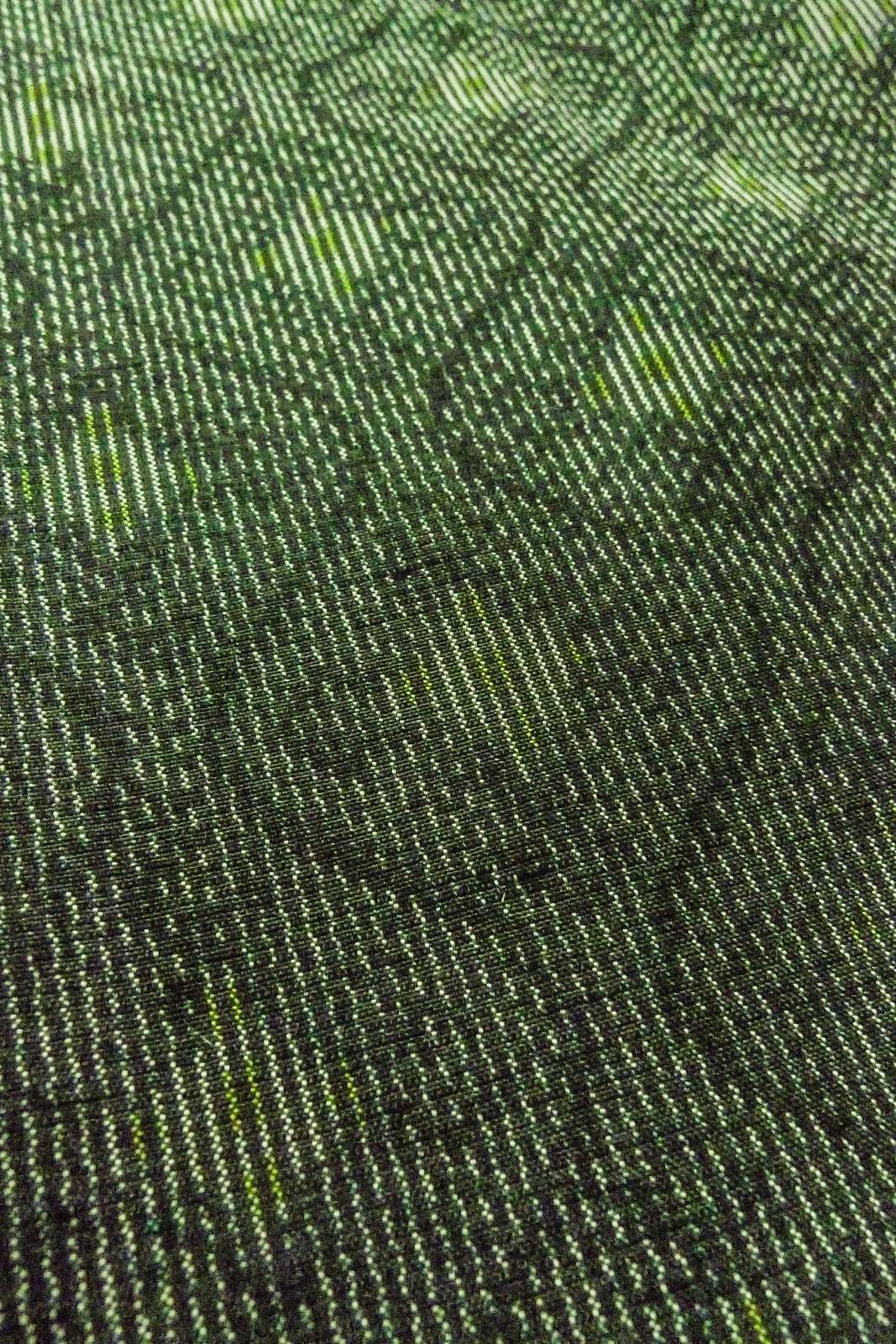O0718A Vintage Japanese kimono Dark Green TSUMUGI pongee for women / Silk. Curved lines, (Grade B)