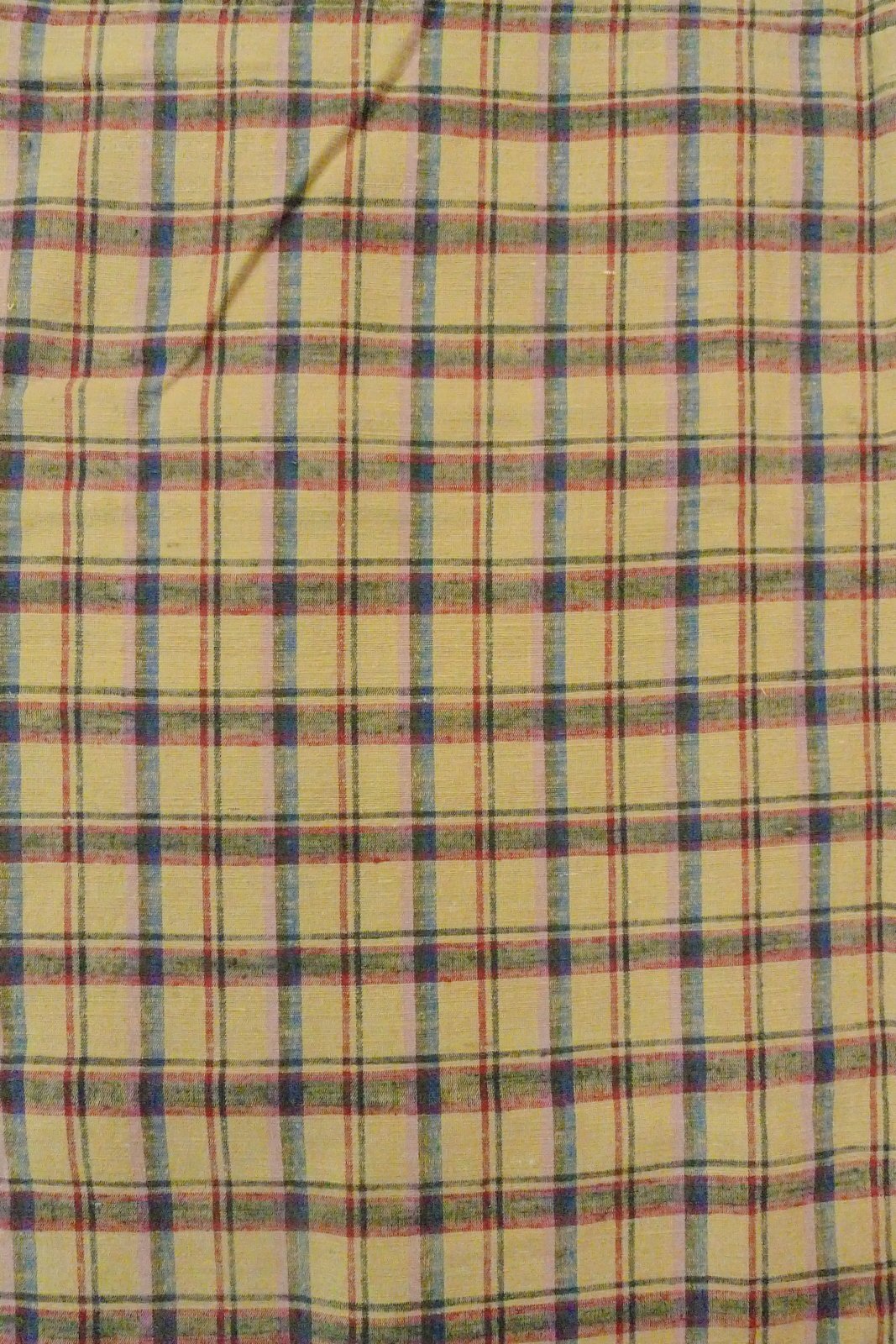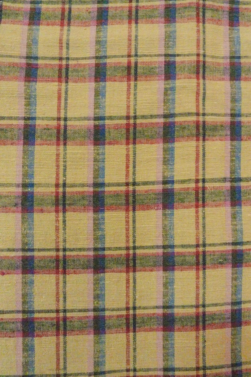 O0718B Vintage Japanese kimono Beige TSUMUGI pongee for women / Silk. Plaid Checks (Grade D) [O0718B]