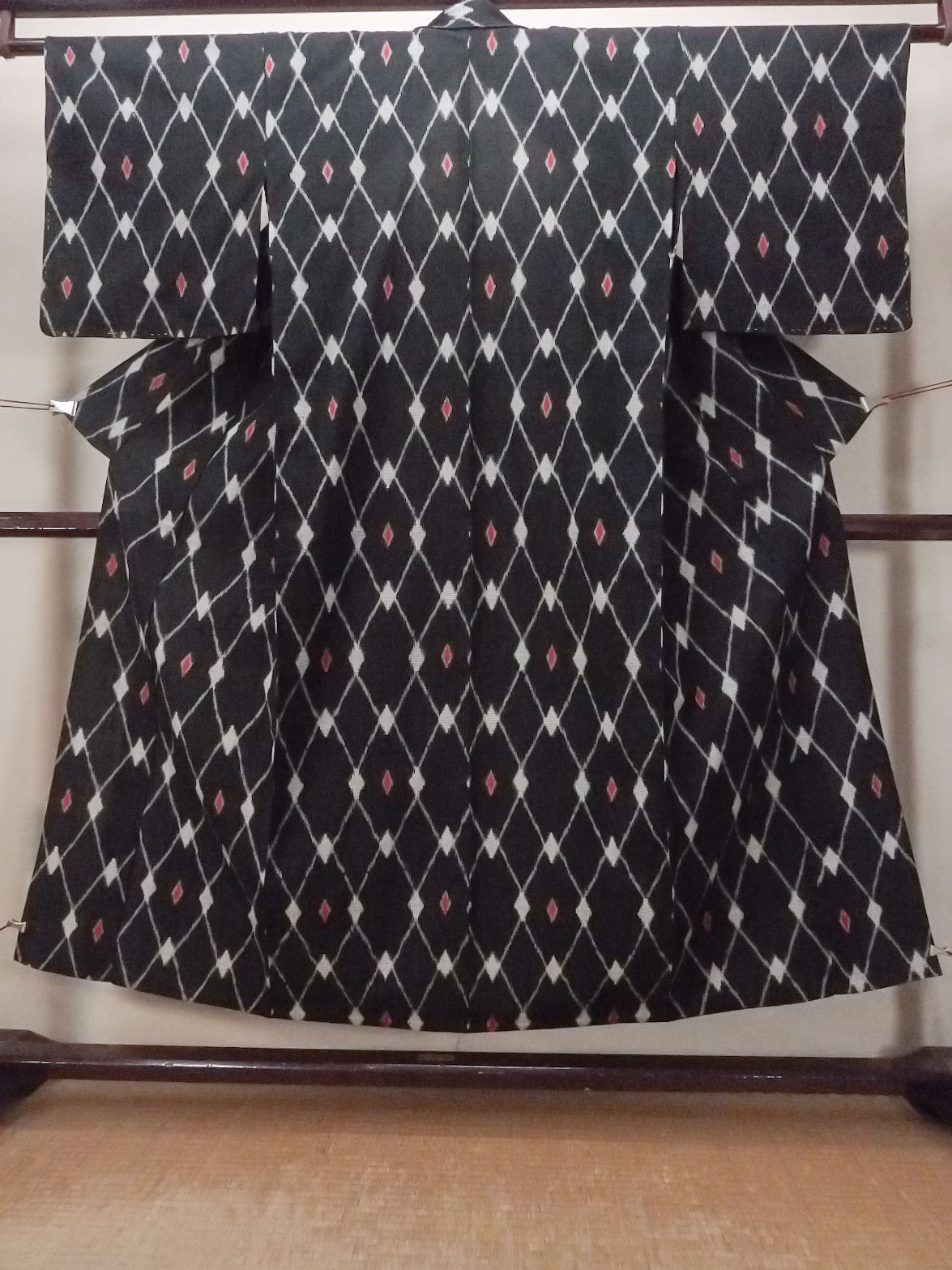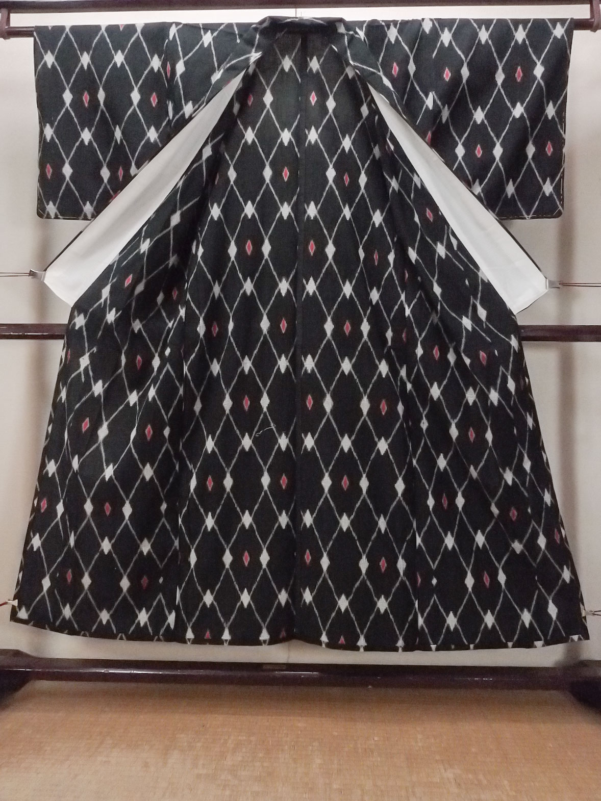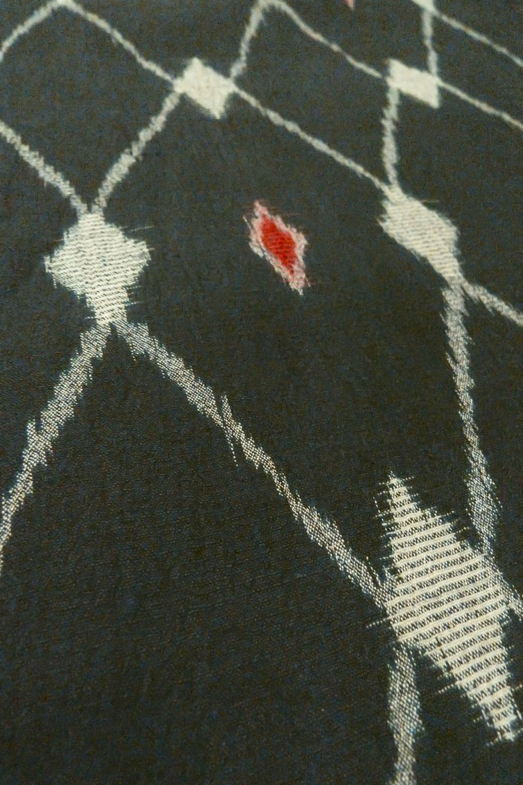 O0718F Vintage Japanese kimono Black ORI woven for women / Silk. Lozenges (Grade B) [O0718F]